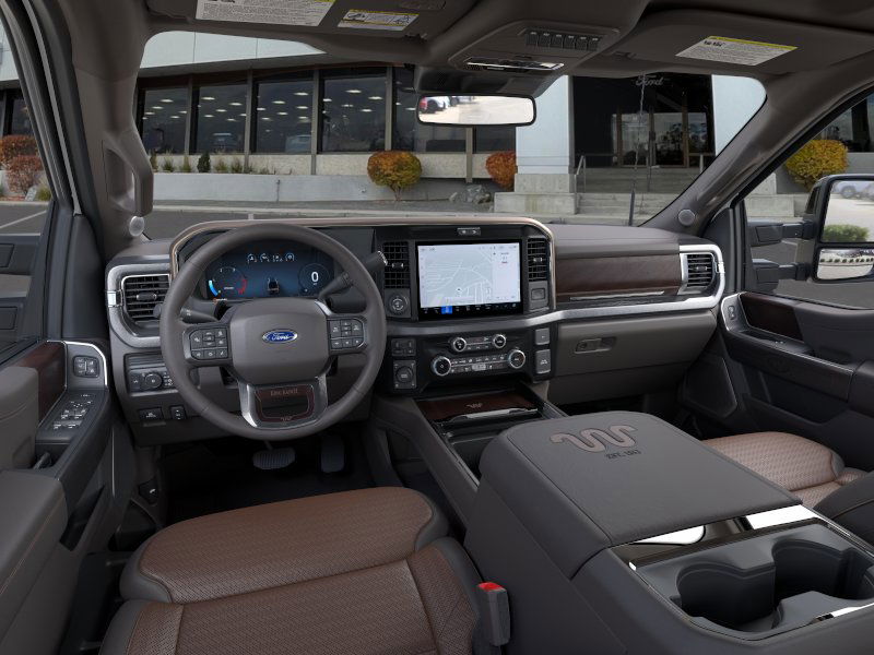ENGINE: 6.7L HIGH OUTPUT POWER STROKE V8 DIESEL Turbo diesel B20, manual push-button engine-exhaust braking and Operator Commanded Regeneration (OCR), 34 Gallon Fuel Tank, 3.31 Axle Ratio, High Capacity 11.6 Axle Upgrade Package, increased GCW and upgraded 11.6 axle, Note: Salespersons portfolio or trailer towing guide should be consulted for specific trailer towing or camper limits and corresponding required equipment, axle ratios and model availability, See supplemental reference for vehicle height consideration, Dual 68 AH AGM 750 CCA Batteries, TWIN PANEL POWER MOONROOF map lights and moonroof switches, TOUGH BED SPRAY-IN BEDLINER tailgate-guard, black box bed tie-down hooks and black bed attachment bolts, MAX RECLINE SEATS 10-way power driver and 8-way power passenger and 4-way headrests, SECURICODE KEYLESS ENTRY KEYPAD (DRIVERS SIDE) Integrated into the B-pillar, ELECTRONIC-LOCKING W/3.31 AXLE RATIO, TRANSMISSION: TORQSHIFT 10-SPEED AUTOMATIC SelectShift and selectable drive modes: normal, eco, slippery roads, tow/haul and off-road. Ford King Ranch with Star White Metallic Tri-Coat/Marsh Gray exterior and Java interior features a 8 Cylinder Engine with 500 HP at 2600 RPM*.