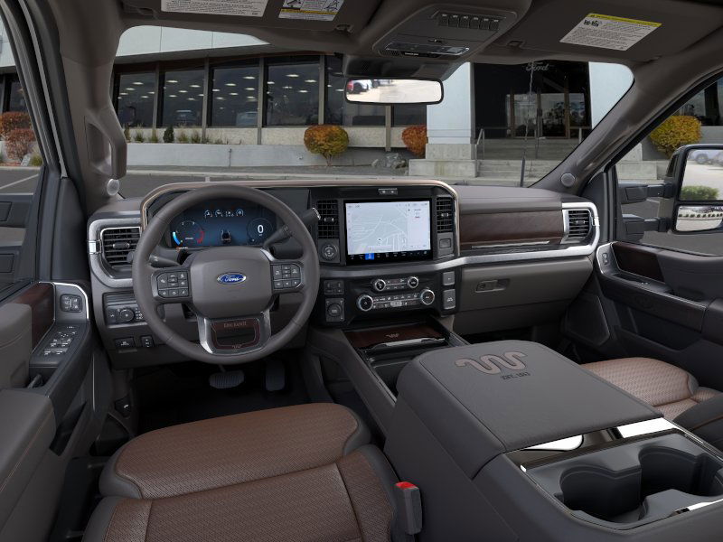 ENGINE: 6.7L HIGH OUTPUT POWER STROKE V8 DIESEL Turbo diesel B20, manual push-button engine-exhaust braking and Operator Commanded Regeneration (OCR), 48 Gallon Fuel Tank, 250 Amp Alternator, 3.55 Axle Ratio, Dual 68 AH AGM 750 CCA Batteries, SECURICODE KEYLESS ENTRY KEYPAD (DRIVERS SIDE) Integrated into the B-pillar, LIMITED SLIP W/3.55 AXLE RATIO, TRANSMISSION: TORQSHIFT 10-SPEED AUTOMATIC SelectShift and selectable drive modes: normal, eco, slippery roads, tow/haul and off-road (STD). Ford King Ranch with Star White Metallic Tri-Coat/Marsh Gray exterior and Java interior features a 8 Cylinder Engine with 500 HP at 2600 RPM*.