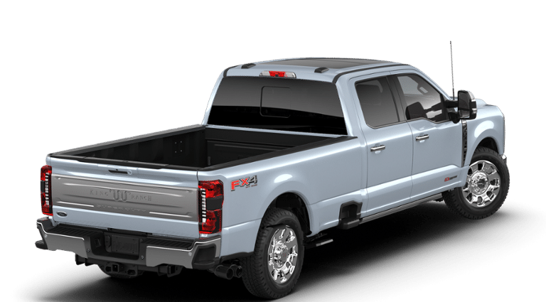 ENGINE: 6.7L HIGH OUTPUT POWER STROKE V8 DIESEL Turbo diesel B20, manual push-button engine-exhaust braking and Operator Commanded Regeneration (OCR), 48 Gallon Fuel Tank, 250 Amp Alternator, GVWR: 12,400 lb Payload Package, 3.31 Axle Ratio, Dual 68 AH AGM 750 CCA Batteries, TWIN PANEL POWER MOONROOF map lights and moonroof switches, CHROME PACKAGE Unique Chrome Mirror Caps, Chrome Front & Rear Bumpers, Wheels: 20 Chrome PVD Aluminum, unique center ornament, Chrome Door Handles, Monochromatic Paint, Chrome Exhaust Tip, TOUGH BED SPRAY-IN BEDLINER tailgate-guard, black box bed tie-down hooks and black bed attachment bolts, SECURICODE KEYLESS ENTRY KEYPAD (DRIVERS SIDE) Integrated into the B-pillar, ELECTRONIC-LOCKING W/3.55 AXLE RATIO, TRANSMISSION: TORQSHIFT 10-SPEED AUTOMATIC SelectShift and selectable drive modes: normal, eco, slippery roads, tow/haul and off-road (STD). Ford King Ranch with Glacier Gray Metallic Tri-Coat exterior and Java interior features a 8 Cylinder Engine with 500 HP at 2600 RPM*.