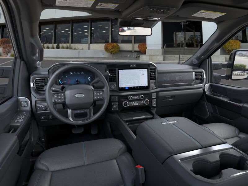 ENGINE: 6.7L HIGH OUTPUT POWER STROKE V8 DIESEL Turbo diesel B20, manual push-button engine-exhaust braking and Operator Commanded Regeneration (OCR), 48 Gallon Fuel Tank, 250 Amp Alternator, GVWR: 12,400 lb Payload Package, 3.31 Axle Ratio, Dual 68 AH AGM 750 CCA Batteries, TWIN PANEL POWER MOONROOF map lights and moonroof switches, TOUGH BED SPRAY-IN BEDLINER tailgate-guard, black box bed tie-down hooks and black bed attachment bolts, SECURICODE KEYLESS ENTRY KEYPAD (DRIVERS SIDE) Integrated into the B-pillar, ELECTRONIC-LOCKING W/3.55 AXLE RATIO, TRANSMISSION: TORQSHIFT 10-SPEED AUTOMATIC SelectShift and selectable drive modes: normal, eco, slippery roads, tow/haul and off-road (STD). Ford Platinum with Carbonized Gray exterior and Black Onyx interior features a 8 Cylinder Engine with 500 HP at 2600 RPM*.