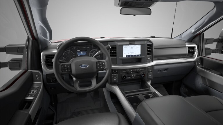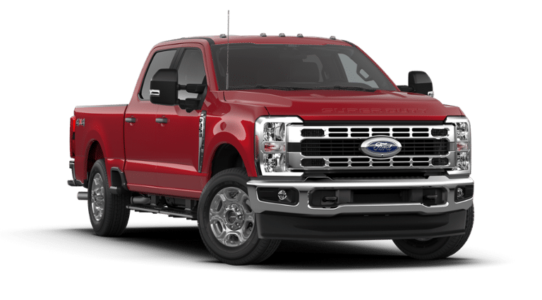 ENGINE: 7.3L 2V DEVCT NA PFI V8 GAS GVWR: 11,100 lb Payload Package, Electronic-Locking w/3.73 Axle Ratio, 360-DEGREE CAMERA PACKAGE wired auxiliary trailer camera compatibility, Rear Parking Sensors, reverse brake assist, LED Center High-Mounted Stop Lamp (CHMSL) Camera, LED center high-mounted stop lamp (CHMSL), 360-Degree Camera, picture in picture capability, BLIS w/Cross-Traffic Alert, trailer coverage, TOUGH BED SPRAY-IN BEDLINER tailgate-guard, black box bed tie-down hooks and black bed attachment bolts, PLATFORM RUNNING BOARDS, TIRES: LT275/70RX18E BSW Automatic Transmission (4) Spare may not be the same as road tire, REMOTE START SYSTEM, DEFROST W/FIXED & PRIVACY GLASS, TRANSMISSION: TORQSHIFT 10-SPEED AUTOMATIC SelectShift and selectable drive modes: normal, eco, slippery roads, tow/haul and off-road. Ford XLT with Ruby Red Metallic Tinted Clearcoat exterior and Medium Dark Slate interior features a 8 Cylinder Engine with 430 HP at 5500 RPM*.