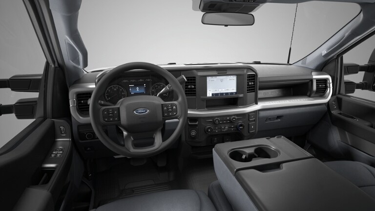 Ford Connectivity Package (1-Year Included), GVWR: 18,000 lbs Payload Package, GVWR: 19,550 lb Payload Plus Upgrade Package 2, High Capacity Trailer Tow Package, Internet access capable: 5G Modem - Ford Connectivity Package, Order Code 660A, Snow Plow Prep Package, XL Chrome Package, 4WD, 190 Amp Alternator, 350 Amp Dual Alternators, 4 Speakers, 4-Wheel Disc Brakes, 6-Ton Hydraulic Jack, ABS brakes, Air Conditioning, AM/FM radio, AM/FM Stereo w/MP3 Player, Brake assist, Center High-Mounted Stop Lamp (CHMSL), Cloth 40/20/40 Split Bench Seat, Compass, Delay-off headlights, Dual 68 AH/65 AGM Battery, Dual front impact airbags, Dual front side impact airbags, Dual rear wheels, Emergency communication system: SYNC 4 911 Assist, Engine Block Heater, Front anti-roll bar, Front Center Armrest w/Storage, Front License Plate Bracket, Front reading lights, Fully automatic headlights, HD Vinyl 40/20/40 Split Bench Seat, Heated door mirrors, Illuminated entry, Low tire pressure warning, Outside temperature display, Overhead airbag, Overhead console, Panic alarm, Passenger cancellable airbag, Passenger vanity mirror, Platform Running Boards, Power door mirrors, Power steering, Power windows, Pro Power Onboard - 400W Outlet, Rear anti-roll bar, Rear View Camera & Prep Kit, Remote keyless entry, Security system, Speed control, Steering wheel mounted audio controls, SYNC 4 Communication & Entertainment System, Tachometer, Telescoping steering wheel, Tilt steering wheel, Traction control, Trailer Brake Controller, Trip computer, Turn signal indicator mirrors, Variably intermittent wipers, Vehicle Integration System 2.0, and Wheels: 19.5" x 6" Argent Painted Steel.