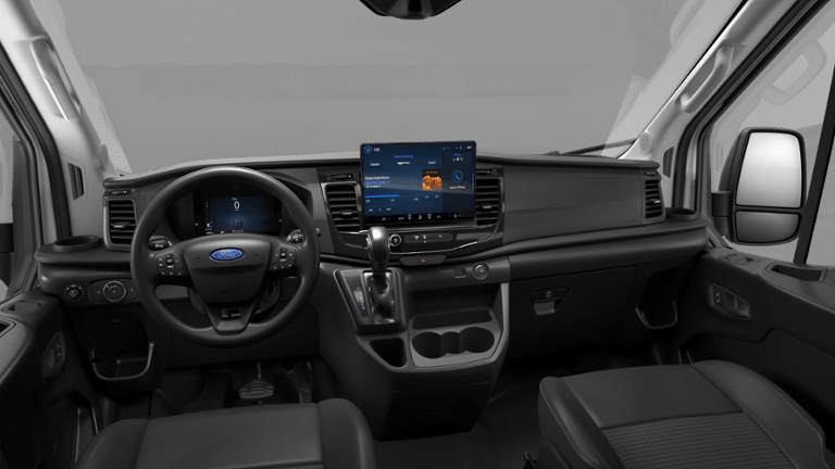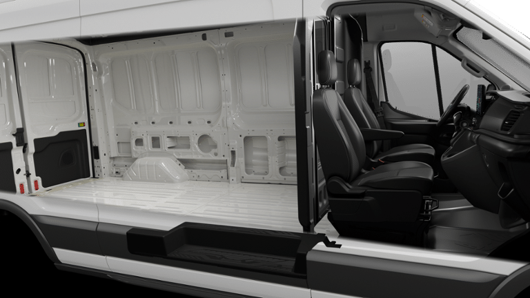 HEAVY-DUTY TRAILER TOW PACKAGE Deletes rear tow hook, 4/7 pin connector assembly and rear jumper and relay system for backup/B+/running lights, This package does not include a Trailer Brake Controller (TBC) (67D), Additionally, this option must be added at time of ordering, Neither a Ford or aftermarket trailer brake controller can be added later (after vehicle is built), Frame Mounted Hitch Receiver, Tow/Haul Mode w/Trailering Wiring Provisions, PASSENGER RUNNING BOARDS Covers the B-C pillar passenger-side, KEYLESS ENTRY KEYPAD, DARK PALAZZO GRAY CLOTH BUCKET SEATS W/ARMRESTS 2-way manual driver seat w/lumbar and 2-way manual passenger seat, TRANSMISSION: 10-SPD AUTOMATIC W/OD & SELECTSHIFT auxiliary transmission oil cooler (STD). Ford Transit Cargo Van with Oxford White exterior and Dark Palazzo Gray interior features a V6 Cylinder Engine with 275 HP at 6250 RPM*.