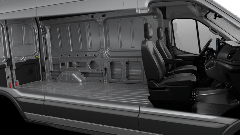 ENGINE: 3.5L ECOBOOST V6 3.73 Limited-Slip Axle Ratio, DARK PALAZZO GRAY CLOTH SWIVEL BUCKET SEATS 4-way manual driver seat w/lumbar, 4-way manual passenger seat and driver and passenger armrest, Dual AGM Batteries (70 Amp-hr Each), HEAVY-DUTY TRAILER TOW PACKAGE Deletes rear tow hook, 4/7 pin connector assembly and rear jumper and relay system for backup/B+/running lights, This package does not include a Trailer Brake Controller (TBC) (67D), Additionally, this option must be added at time of ordering, Neither a Ford or aftermarket trailer brake controller can be added later (after vehicle is built), Frame Mounted Hitch Receiver, Tow/Haul Mode w/Trailering Wiring Provisions, FIXED REAR CARGO DOOR GLASS Privacy Glass, Provides protection of vehicle occupant(s) and occupant personal belongings, The glass also provides occupant comfort by helping to reduce vehicle cool-down time, Rear-Window Defroster, Rearview Mirror, TRANSMISSION: 10-SPD AUTOMATIC W/OD & SELECTSHIFT auxiliary transmission oil cooler (STD). Ford Transit Cargo Van with Ingot Silver exterior and Dark Palazzo Gray interior features a V6 Cylinder Engine with 310 HP at 5000 RPM*.