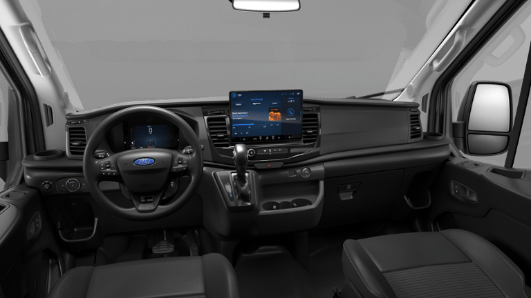 ENGINE: 3.5L ECOBOOST V6, FORD CO-PILOT360 ASSIST 2.0 HD Radio, connected navigation (1-year included w/Ford Connectivity Package) and 360-degree camera, Reverse Brake Assist, Short-Arm Pwr-Folding Heated Pwr Adjusting Mirrors, turn signals, Front Fog Lamps, Auxiliary lamps that are generally integrated into the front fascia and designed to help illuminate the roadway during poor visibility, SiriusXM w/360L, Adaptive Cruise Control w/Lane Centering, stop and go and lane centering (under 10,000lb GVWR only) and predictive speed assist, Blind Spot Information System w/Cross Traffic Alert, Side Parking Sensors, DARK PALAZZO GRAY CLOTH SWIVEL BUCKET SEATS 4-way manual driver seat w/lumbar, 4-way manual passenger seat and driver and passenger armrest, Dual AGM Batteries (70 Amp-hr Each), HEAVY-DUTY TRAILER TOW PACKAGE Deletes rear tow hook, 4/7 pin connector assembly and rear jumper and relay system for backup/B+/running lights, This package does not include a Trailer Brake Controller (TBC) (67D), Additionally, this option must be added at time of ordering, Neither a Ford or aftermarket trailer brake controller can be added later (after vehicle is built), Frame Mounted Hitch Receiver, Tow/Haul Mode w/Trailering Wiring Provisions, FIXED REAR CARGO DOOR GLASS Privacy Glass, Provides protection of vehicle occupant(s) and occupant personal belongings, The glass also provides occupant comfort by helping to reduce vehicle cool-down time, Rear-Window Defroster, Rearview Mirror, 3.73 LIMITED-SLIP AXLE RATIO, SPARE TIRE & WHEEL 3 ton jack, tool kit and full-size matching tire, TRANSMISSION: 10-SPD AUTOMATIC W/OD & SELECTSHIFT auxiliary transmission oil cooler (STD). Ford Transit Cargo Van with Carbonized Gray exterior and Dark Palazzo Gray interior features a V6 Cylinder Engine with 300 HP at 5000 RPM*.
