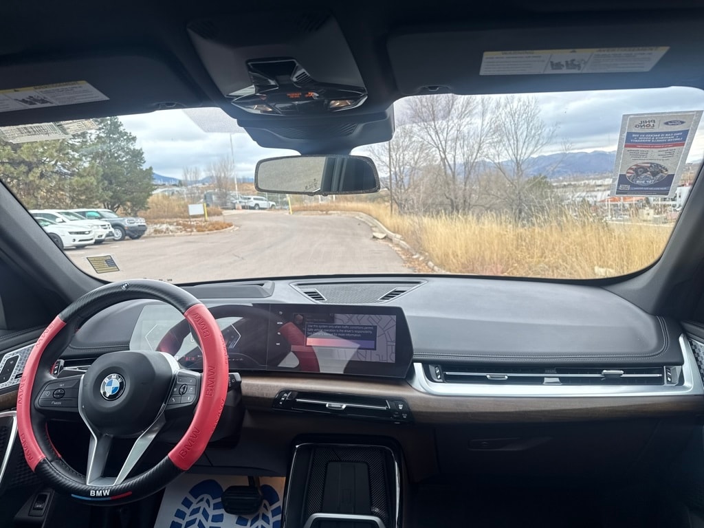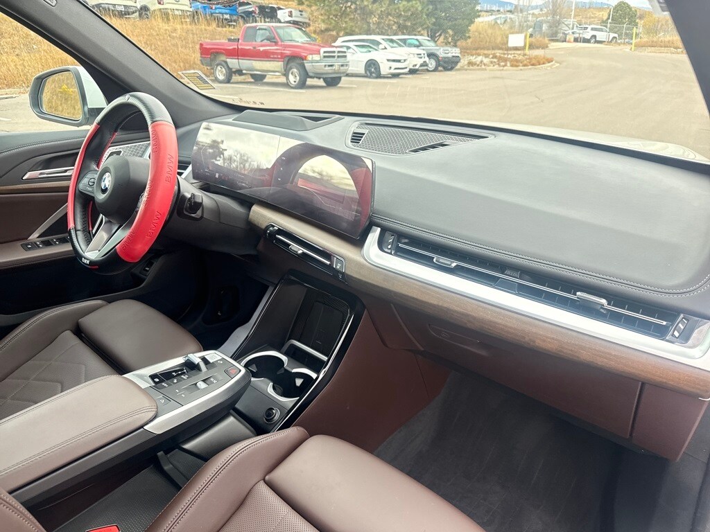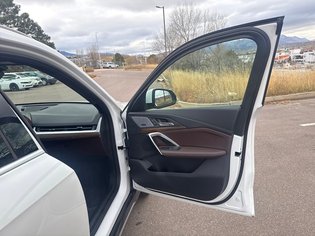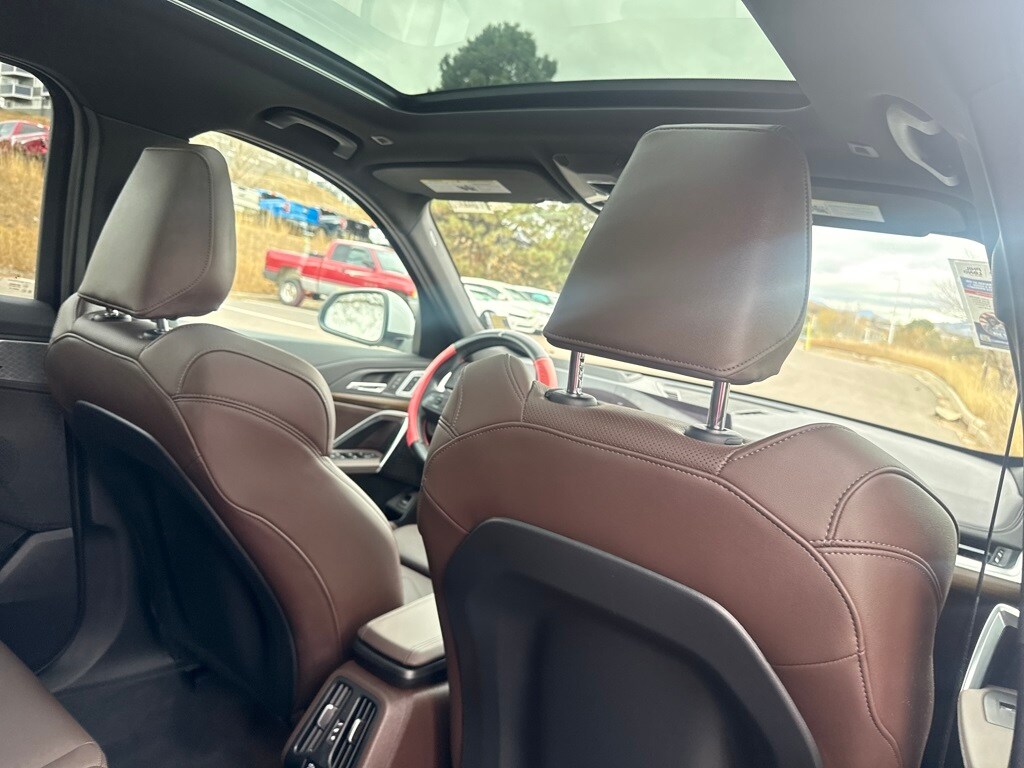 Driving Assistance Professional Package (Active Driving Assistant Pro, Active Lane Keeping Assistant, and Traffic Jam Assistant), Technology Package (Auto-Dimming Rear-View Mirror, Comfort Access Keyless Entry, Head-Up Display, Live Cockpit Pro, Panoramic Moonroof, Parking Assistant Plus, Premium Content 1, and Wireless Device Charging), 4-Wheel Disc Brakes, 7 Speakers, ABS brakes, Air Conditioning, Alloy wheels, AM/FM Radio, AM/FM radio: SiriusXM with 360L, Apple CarPlay Compatibility, Auto High-beam Headlights, Automatic temperature control, BMW TeleServices, Brake assist, Bumpers: body-color, Compass, Delay-off headlights, Driver door bin, Driver vanity mirror, Dual front impact airbags, Dual front side impact airbags, Electronic Stability Control, Emergency communication system: BMW Assist eCall, Exterior Parking Camera Rear, Four wheel independent suspension, Front anti-roll bar, Front Bucket Seats, Front Center Armrest w/Storage, Front dual zone A/C, Front reading lights, Heated door mirrors, Heated Front Seats, Heated front seats, Heated Steering Wheel, Illuminated entry, Knee airbag, Leather steering wheel, Low tire pressure warning, Memory seat, Navigation, Navigation System, Occupant sensing airbag, Outside temperature display, Overhead airbag, Overhead console, Panic alarm, Passenger door bin, Passenger vanity mirror, Perforated Veganza Upholstery, Power door mirrors, Power driver seat, Power Front Seats, Power Liftgate, Power passenger seat, Power steering, Power windows, Radio data system, Rain sensing wipers, Rear anti-roll bar, Rear reading lights, Rear seat center armrest, Rear window defroster, Rear window wiper, Remote Engine Start, Remote keyless entry, Security system, Speed control, Speed-sensing steering, Speed-Sensitive Wipers, Split folding rear seat, Spoiler, Sport Seats, Steering wheel mounted audio controls, Tachometer, Telescoping steering wheel, Tilt steering wheel, Traction control, Trip computer, Turn signal indicator mirrors, Universal Garage-Door Opener, Variably intermittent wipers, Wheels: 18" x 7.5" V-Spoke Bi-Color, and Widescreen Display.