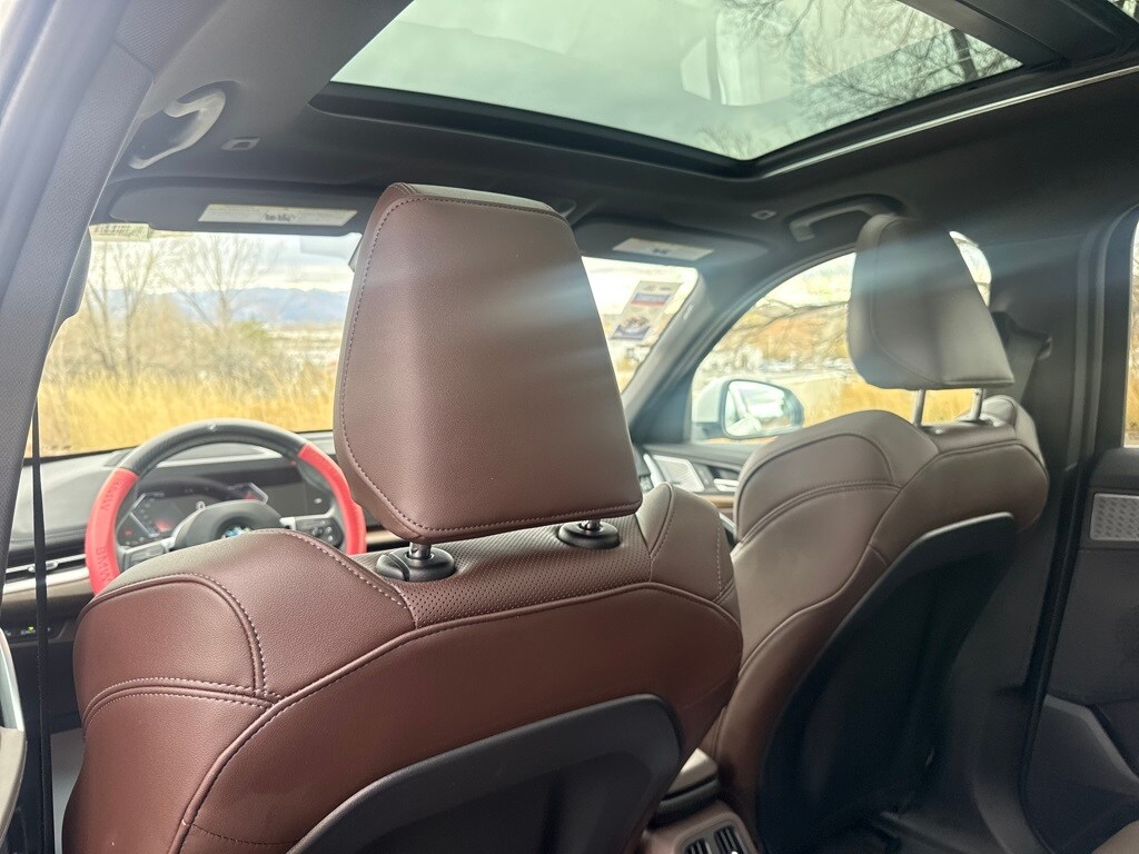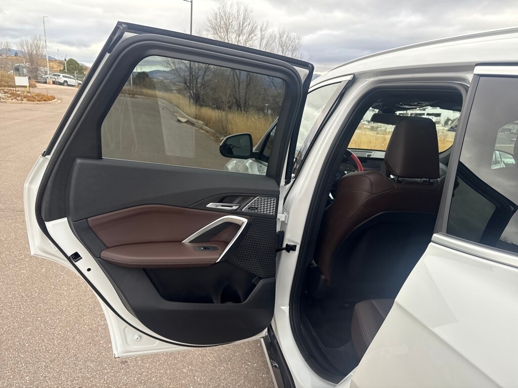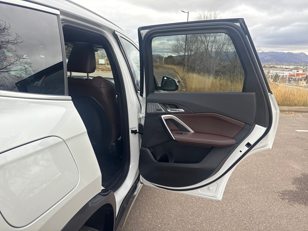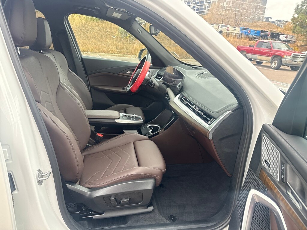 Driving Assistance Professional Package (Active Driving Assistant Pro, Active Lane Keeping Assistant, and Traffic Jam Assistant), Technology Package (Auto-Dimming Rear-View Mirror, Comfort Access Keyless Entry, Head-Up Display, Live Cockpit Pro, Panoramic Moonroof, Parking Assistant Plus, Premium Content 1, and Wireless Device Charging), 4-Wheel Disc Brakes, 7 Speakers, ABS brakes, Air Conditioning, Alloy wheels, AM/FM Radio, AM/FM radio: SiriusXM with 360L, Apple CarPlay Compatibility, Auto High-beam Headlights, Automatic temperature control, BMW TeleServices, Brake assist, Bumpers: body-color, Compass, Delay-off headlights, Driver door bin, Driver vanity mirror, Dual front impact airbags, Dual front side impact airbags, Electronic Stability Control, Emergency communication system: BMW Assist eCall, Exterior Parking Camera Rear, Four wheel independent suspension, Front anti-roll bar, Front Bucket Seats, Front Center Armrest w/Storage, Front dual zone A/C, Front reading lights, Heated door mirrors, Heated Front Seats, Heated front seats, Heated Steering Wheel, Illuminated entry, Knee airbag, Leather steering wheel, Low tire pressure warning, Memory seat, Navigation, Navigation System, Occupant sensing airbag, Outside temperature display, Overhead airbag, Overhead console, Panic alarm, Passenger door bin, Passenger vanity mirror, Perforated Veganza Upholstery, Power door mirrors, Power driver seat, Power Front Seats, Power Liftgate, Power passenger seat, Power steering, Power windows, Radio data system, Rain sensing wipers, Rear anti-roll bar, Rear reading lights, Rear seat center armrest, Rear window defroster, Rear window wiper, Remote Engine Start, Remote keyless entry, Security system, Speed control, Speed-sensing steering, Speed-Sensitive Wipers, Split folding rear seat, Spoiler, Sport Seats, Steering wheel mounted audio controls, Tachometer, Telescoping steering wheel, Tilt steering wheel, Traction control, Trip computer, Turn signal indicator mirrors, Universal Garage-Door Opener, Variably intermittent wipers, Wheels: 18" x 7.5" V-Spoke Bi-Color, and Widescreen Display.