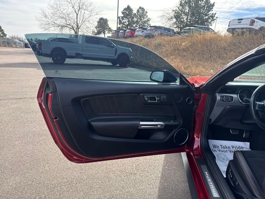 California Special (Black Painted Mirror Caps, Black Raised Decklid Spoiler, Diamond Plate Aluminum Instrument Panel, Door Inserts, Leather/Miko Suede Seating Surfaces, Prem Carpeted Floor Mats w/Red Contrast Stitching, Unique Black Upper & Lower Grilles, and Wheels: 19" Ebony Black Painted Machined Alum), Equipment Group 401A (Blind Spot Info System w/Cross-Traffic Alert, HD Radio, Memory Driver Seat, Mirrors & Ambient Lighting, and Shaker Pro Audio System), 4-Wheel Disc Brakes, 9 Speakers, ABS brakes, Air Conditioning, Alloy wheels, AM/FM radio: SiriusXM, AM/FM Stereo w/Single CD Player, Auto-dimming Rear-View mirror, Automatic temperature control, Block heater, Brake assist, Bumpers: body-color, CD player, Climate Controlled Heated/Cooled Front Seats, Compass, Convertible roof lining, Delay-off headlights, Driver door bin, Driver vanity mirror, Dual front impact airbags, Dual front side impact airbags, Ebony Tape Stripe, Electronic Stability Control, Emergency communication system: 911 Assist, Exterior Parking Camera Rear, Four wheel independent suspension, Front anti-roll bar, Front Bucket Seats, Front Center Armrest, Front dual zone A/C, Front fog lights, Front reading lights, Fully automatic headlights, Garage door transmitter, Glass rear window, Heated door mirrors, Heated front seats, High-Intensity Discharge Headlights, Illuminated entry, Knee airbag, Leather Bucket Seats, Leather Shift Knob, Low tire pressure warning, Occupant sensing airbag, Outside temperature display, Overhead console, Panic alarm, Passenger door bin, Passenger vanity mirror, Power convertible roof, Power door mirrors, Power driver seat, Power passenger seat, Power steering, Power windows, Radio data system, Rear anti-roll bar, Rear window defroster, Remote keyless entry, Reverse Sensing System, Security system, SiriusXM Radio, Speed control, Speed-sensing steering, Speed-Sensitive Wipers, Spoiler, Steering wheel mounted audio controls, SYNC 3 Communications & Entertainment System, Tachometer, Telescoping steering wheel, Tilt steering wheel, Traction control, Trip computer, Turn signal indicator mirrors, Variably intermittent wipers, Ventilated front seats, Voice-Activated Touch-Screen Navigation System, Voltmeter, and Wheels: 18" x 8" Magnetic Painted/Machined.