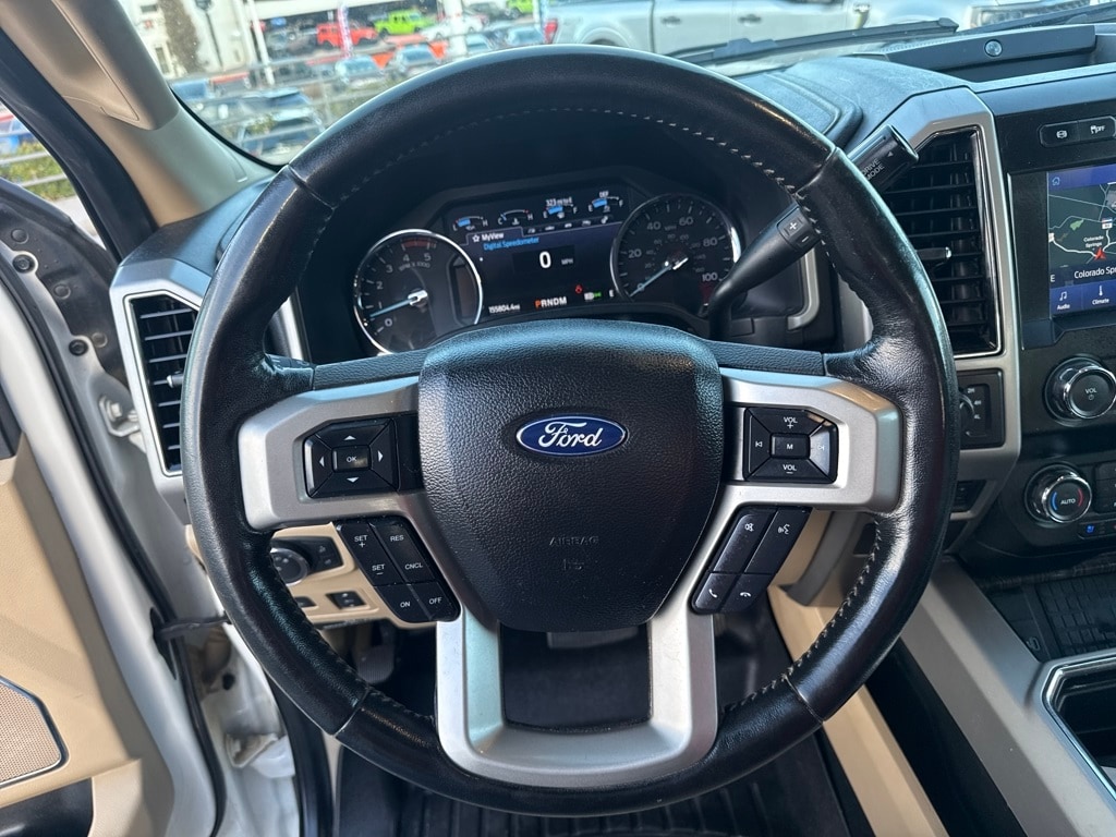 FX4 Off-Road Package (Hill Descent Control, Off-Road Specifically Tuned Shock Absorbers, and Unique FX4 Off-Road Box Decal), GVWR: 10,000 lb Payload Package, High Capacity Trailer Tow Package, Order Code 608A, Pro Trailer Backup Assist - High Capacity (Ultimate Trailer Tow Camera System), 4WD, 10 Speakers, 110V/400W Outlet, 3.73 Axle Ratio, 4-Wheel Disc Brakes, 6" Angular Chrome Step Bar, ABS brakes, Adjustable pedals, Air Conditioning, Alloy wheels, AM/FM radio: SiriusXM, Auto High-beam Headlights, Auto-dimming Rear-View mirror, Automatic temperature control, Brake assist, Bumpers: chrome, Compass, Delay-off headlights, Driver door bin, Driver vanity mirror, Dual front impact airbags, Dual front side impact airbags, Electronic Stability Control, Emergency communication system: SYNC 3 911 Assist, Engine Block Heater, Exterior Parking Camera Rear, Flow-Through Console, Front anti-roll bar, Front Bucket Seats, Front Center Armrest, Front dual zone A/C, Front fog lights, Front Leather Seating Surfaces 40/Console/40, Front reading lights, Fully automatic headlights, Heated door mirrors, Illuminated entry, Leather steering wheel, LED Box Lighting, Low tire pressure warning, Outside temperature display, Overhead airbag, Overhead console, Panic alarm, Passenger door bin, Passenger vanity mirror, Power door mirrors, Power driver seat, Power passenger seat, Power steering, Power windows, PowerScope Trailer Tow Mirrors w/Heat, Quad Beam LED Headlamps & LED Taillamps, Radio data system, Radio: B&O System by Bang & Olufsen, Rear Parking Sensors, Rear reading lights, Rear seat center armrest, Rear step bumper, Rear window defroster, Remote keyless entry, Remote Start System, Security system, SiriusXM Radio, Speed control, Split folding rear seat, Steering wheel mounted audio controls, SYNC 3 Communications & Entertainment System, Tachometer, Tailgate Step & Handle, Telescoping steering wheel, Tilt steering wheel, Traction control, Trip computer, Turn signal indicator mirrors, Twin Panel Power Moonroof, Universal Garage Door Opener (UGDO), Upfitter Switches (6), Variably intermittent wipers, Voice-Activated Touchscreen Navigation System, Wheels: 18" Bright Machined Cast Aluminum, and Wheels: 20" Bright Machined Cast Aluminum.