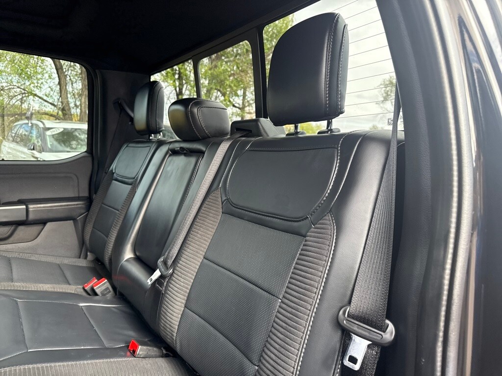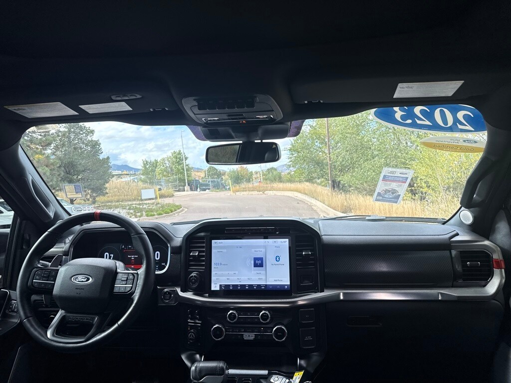 Equipment Group 801A Standard, GVWR: 7,300 lbs Payload Package, Moonroof & Tailgate (Power Tailgate and Twin Panel Moonroof), Raptor Carbon Fiber Package, 4WD, 17" Cast Aluminum Wheels, 17" Forged Aluminum Bead-Lock Capable Wheels, 18 Speakers, 4-Wheel Disc Brakes, ABS brakes, Adaptive suspension, Adjustable pedals, Air Conditioning, Alloy wheels, AM/FM radio: SiriusXM with 360L, Auto High-beam Headlights, Auto Start-Stop Removal (DISC), Auto tilt-away steering wheel, Auto-dimming door mirrors, Auto-dimming Rear-View mirror, Automatic temperature control, Brake assist, Bumpers: body-color, Compass, Delay-off headlights, Driver door bin, Driver vanity mirror, Dual front impact airbags, Dual front side impact airbags, Electronic Locking w/4.10 Axle Ratio, Electronic Stability Control, Emergency communication system, Exterior Parking Camera Rear, Front anti-roll bar, Front Bucket Seats, Front Center Armrest, Front dual zone A/C, Front fog lights, Front reading lights, Front wheel independent suspension, Fully automatic headlights, Garage door transmitter, Heated door mirrors, Heated front seats, Heated rear seats, Heated steering wheel, Illuminated entry, Inclination/Intrusion Sensor Removal, Lane Departure Warning System, Leather Trim Seats w/Heated 2nd Row, Low tire pressure warning, Memory seat, Navigation system: Connected Navigation, Occupant sensing airbag, Outside temperature display, Overhead airbag, Overhead console, Panic alarm, Passenger door bin, Passenger vanity mirror, Pedal memory, Power door mirrors, Power driver seat, Power passenger seat, Power steering, Power windows, Radio data system, Radio: B&O Unleashed Sound System by Bang & Olufsen, Rain sensing wipers, Rear reading lights, Rear step bumper, Rear window defroster, Remote keyless entry, Security system, Speed control, Speed-sensing steering, Split folding rear seat, Steering Wheel Heat Removal (DISC), Steering wheel memory, Steering wheel mounted audio controls, SYNC 4 w/Enhanced Voice Recognition, Tachometer, Telescoping steering wheel, Tilt steering wheel, Traction control, Trip computer, Turn signal indicator mirrors, Variably intermittent wipers, and Ventilated front seats.