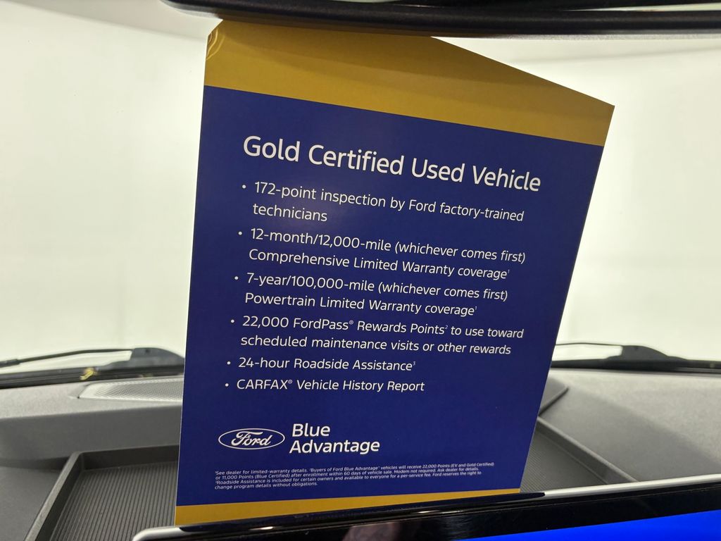 172 point vehicle inspection performed by a Ford Certified technician. 12-month/12,000-mile Comprehensive Limited Warranty coverage 7-year/100,000-mile Powertrain Limited Warranty coverage Gold Certification includes 22,000 FordPass Rewards Points Comprehensive Coverage: 12 months or 12,000 miles, whichever comes first, from the expiration of the new-vehicle bumperto-bumper limited warranty coverage or the date of sale as a certified vehicle, whichever is later. Comprehensive Limited Warranty covering 1,000+ components. Powertrain Coverage: 7 years from original new-vehicle warranty start date or 100,000 miles, whichever occurs first. Powertrain Limited Warranty covering select major components. 24/7 Roadside Assistance Travel expense reimbursement Rental car reimbursement SiriusXM 3 month trial Local home delivery Test-Drive at home. Recent Arrival! Odometer is 21538 miles below market average!