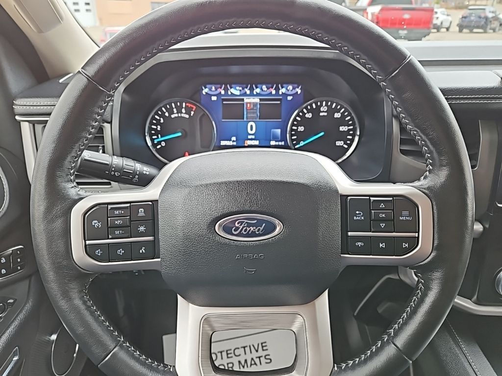 EQUIPMENT GROUP 202A HIGH PACKAGE Wireless Charging Pad, Located in media hub, Power Liftgate, 2nd Row Power-Folding Captains Chairs, armrests and tip-and-slide, Accent Color Painted Rear Bumper, Heated Steering Wheel, Heated/Ventilated Front Seats, 110V/150W AC Power Outlet, Power-Folding Sideview Mirrors w/Autofold, power and heated glass, turn signal indicators, security approach lamps, driver/passenger side memory, drivers side auto-dimming and body-color caps, 3rd Row Vinyl Power-Folding Head Restraints, power recline, 4-Door Intelligent Access (Lock/Unlock), Power-Adjustable Pedals w/Memory, SecuriCode Keyless Entry Keypad, Power Tilt/Telescopic Steering Wheel w/Memory, Ambient Lighting, Remote Start, Advanced Security Pack, SecuriLock Passive Anti-Theft System (PATS) and, SPECIAL EDITION PACKAGE Wheels: 20 Bright Machined Aluminum, Premium dark tarnish-painted, dark carbonized gray-painted pockets, Vinyl Center Console, Intersection Assist, pre-collision assist w/autonomous emergency braking, pedestrian detection, forward collision warning and dynamic brake support, LED Fog Lamps w/Black Painted Bezel, LED Reflector Headlamps, signature lighting and bright bezel, Sideview Mirrors w/Turn Signal Indicators, Tires: P275/55R20 AS BSW, Ford Co-Pilot360 Assist+, Intelligent Adaptive Cruise Control, stop-and-go, lane centering assist and speed sign recognition, Front Parking Sensors, Evasive Steering, Connected Navigation, 1 year of connectivity, pinch-to-zoom capability, live traffic, predictive destinations and route guidance, PANORAMIC VISTA ROOF power open/close w/power shade, HEAVY-DUTY TRAILER TOW PACKAGE 3.73 Axle Ratio, non-limited-slip rear axle, Integrated Trailer Brake Controller, 26mm Engine Radiator, Pro Trailer Backup Assist, 2-Speed Automatic 4WD, neutral towing capability, Rear View Digital Camera, Reverse Brake Assist, Front Tow Hooks, TRANSMISSION: 10-SPEED AUTOMATIC W/SELECTSHIFT (STD). Ford XLT with Star White Metallic Tri-Coat exterior and Black Onyx interior features a V6 Cylinder Engine with 380 HP at 5000 RPM*.