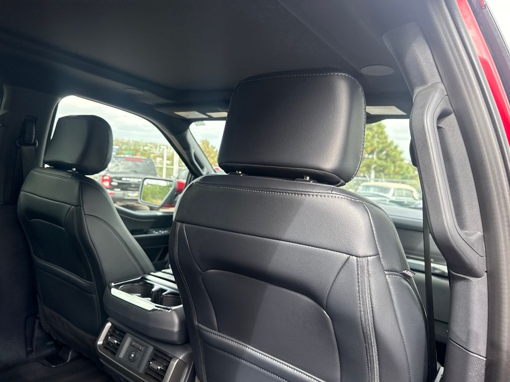 EQUIPMENT GROUP 502A HIGH Ambient Lighting - Ice Blue Color Only, Wheels: 20 Chrome-Like PVD, Radio: B&O Unleashed Sound System by Bang & Olufsen, HD Radio and 14 speakers including subwoofer, 2nd Row Heated Seats, Mobile Office Package, Wireless Charging, Partitioned Lockable Rear Storage, Console Worksurface, 6 Extended Angular Bright Anodized Step Bar, Power-Sliding Rear Window, Heads-Up Display, Illuminated Driver & Passenger Visors, covered mirrors, Tires: 275/60R20 All-Terrain, TWIN PANEL MOONROOF, TRAY STYLE FLOOR LINER W/CARPET MATS, TRANSMISSION: ELECTRONIC 10-SPEED AUTOMATIC SelectShift w/progressive range select and selectable drive modes: normal, ECO, sport, tow/haul, slippery, deep snow/sand and mud/rut (STD). Ford LARIAT with Rapid Red Metallic Tinted Clearcoat exterior and Black interior features a 8 Cylinder Engine with 400 HP at 6000 RPM*.