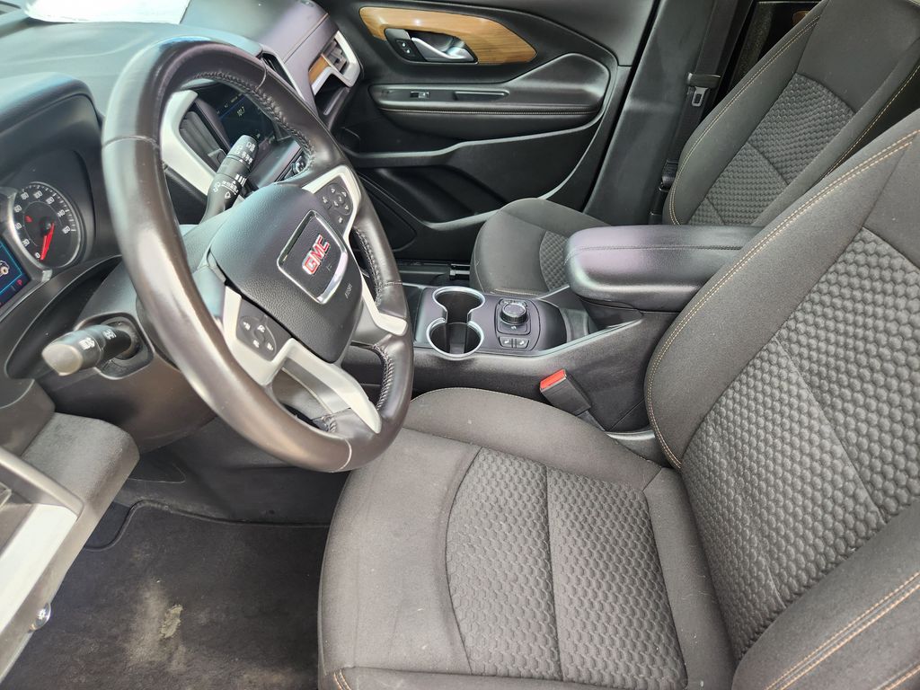 DRIVER CONVENIENCE PACKAGE includes (BTV) Remote Start, (CJ2) dual-zone automatic climate control, (KA1) driver and front passenger heated seats, (AG1) 8-way power driver seat adjuster, (AL9) driver power lumbar control and (V2P) roof-mounted luggage rack side rails, DRIVER ALERT PACKAGE I includes (UKC) Lane Change Alert with Side Blind Zone Alert, (UFG) Rear Cross Traffic Alert, (UD7) Rear Park Assist and (HS1) Safety Alert Seat Also includes (DWK) outside heated power-adjustable manual-folding body-color mirrors with LED turn signal indicators.), LIFTGATE, REAR POWER PROGRAMMABLE, AUDIO SYSTEM, 7 DIAGONAL GMC INFOTAINMENT SYSTEM includes multi-touch display, AM/FM stereo, includes Bluetooth® streaming audio for music and most phones; featuring Android Auto® and Apple CarPlay® capability for compatible phones (STD), ENGINE, 1.5L TURBO DOHC 4-CYLINDER, SIDI, VVT (170 hp [127.0 kW] @ 5600 rpm, 203 lb-ft of torque [275.0 N-m] @ 2000 - 4000 rpm) (STD), TRANSMISSION, 9-SPEED AUTOMATIC 9T45, ELECTRONICALLY-CONTROLLED WITH OVERDRIVE (STD). GMC SLE with Ebony Twilight Metallic exterior and Jet Black interior features a 4 Cylinder Engine with 170 HP at 5600 RPM*.