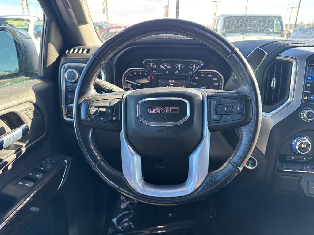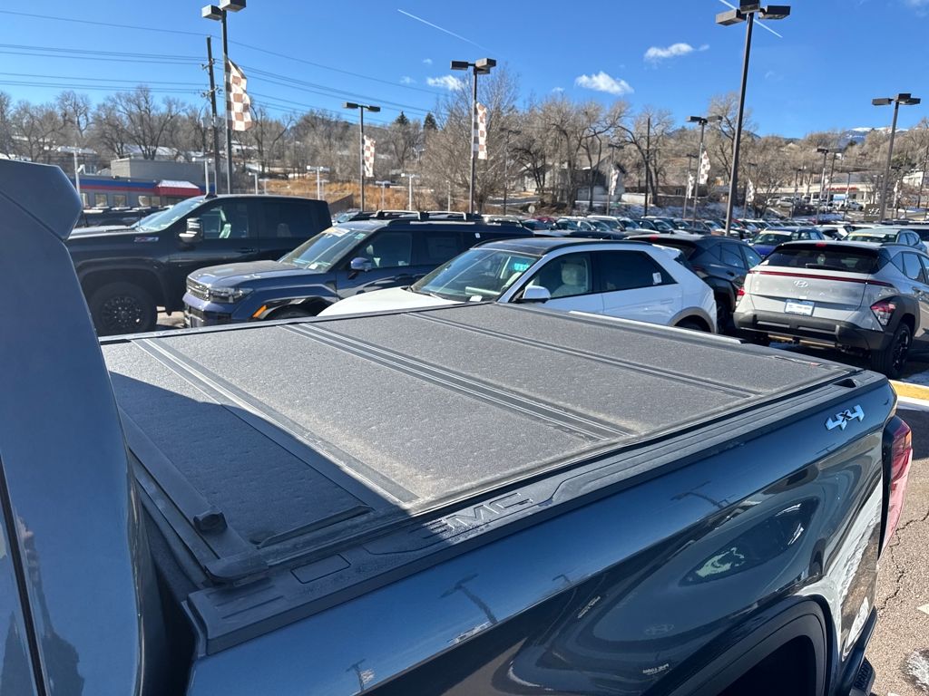 Cloth Rear Seat w/Storage Package, Elevation Convenience Package (10-Way Power Driver Seat Adjuster w/Lumbar, Dual-Zone Automatic Climate Control, Heated Driver & Front Outboard Passenger Seating, Heated Steering Wheel, Manual Tilt-Wheel & Telescoping Steering Column, and Rear Wheelhouse Liners), Elevation Value Package (Heavy-Duty Rear Locking Differential), GMC Protection Package (LPO) (All-Weather Floor Liner (LPO) and Front & Rear Black Molded Splash Guards (LPO)), Preferred Equipment Group 3SB (12-Volt Rear Auxiliary Power Outlet, 4G LTE Wi-Fi Hotspot Capable, Body-Color Surround Grille, Color-Keyed Carpeting Floor Covering, Compass, Deep-Tinted Glass, Electric Rear-Window Defogger, Electrical Lock Control Steering Column, Front Frame-Mounted Black Recovery Hooks, Front Rubberized-Vinyl Floor Mats, GMC Connected Access Capable, Keyless Open & Start, LED Cargo Area Lighting, Manual Tilt Wheel Steering Column, OnStar & GMC Connected Services Capable, Power Door Locks, Power Front Windows w/Driver Express Up/Down, Power Front Windows w/Passenger Express Down, Power Rear Windows w/Express Down, Rear Dual USB Charging-Only Ports, Rear Rubberized-Vinyl Floor Mats, Remote Vehicle Starter System, Single-Zone Manual/Semi-Automatic Air Conditioning, Steering Wheel Audio Controls, and Theft Deterrent System (Unauthorized Entry)), Trailering Package (Hitch Guidance), 8-Speed Automatic, 4WD, Black Cloth, 220 Amp Alternator, 4-Way Manual Driver Seat Adjuster, 4-Way Manual Passenger Seat Adjuster, 4-Wheel Disc Brakes, 6 Speakers, 6-Speaker Audio System Feature, ABS brakes, Air Conditioning, Alloy wheels, AM/FM radio, Apple CarPlay/Android Auto, Brake assist, Bumpers: body-color, Cloth Seat Trim, Delay-off headlights, Driver door bin, Driver vanity mirror, Dual front impact airbags, Dual front side impact airbags, Electronic Stability Control, Engine Block Heater, Exterior Parking Camera Rear, Front 40/20/40 Split-Bench Seat, Front anti-roll bar, Front Center Armrest w/Storage, Front fog lights, Front License Plate Kit, Front reading lights, Front wheel independent suspension, Fully automatic headlights, Heated door mirrors, Heavy Duty Suspension, Illuminated entry, Low tire pressure warning, Occupant sensing airbag, Outside temperature display, Overhead airbag, Overhead console, Panic alarm, Passenger door bin, Passenger vanity mirror, Power door mirrors, Power steering, Power windows, Premium audio system: GMC Infotainment System, Radio data system, Radio: GMC Infotainment Audio System, Rear reading lights, Rear step bumper, Rear window defroster, Remote keyless entry, Security system, Speed control, Speed-sensing steering, Split folding rear seat, Spray-On Pickup Bed Liner w/GMC Logo, Steering wheel mounted audio controls, Tachometer, Tilt steering wheel, Traction control, Trip computer, Variably intermittent wipers, Voltmeter, and Wheels: 20" x 9" Black Gloss Painted Aluminum.