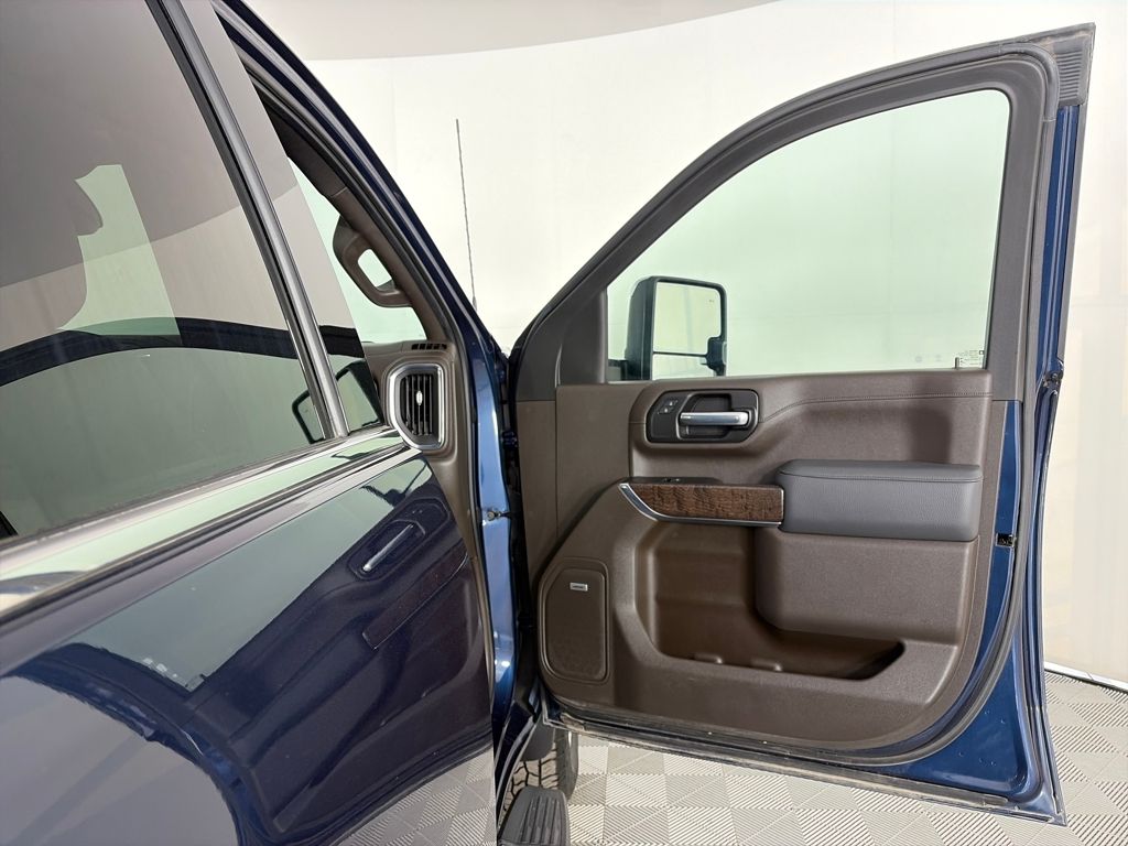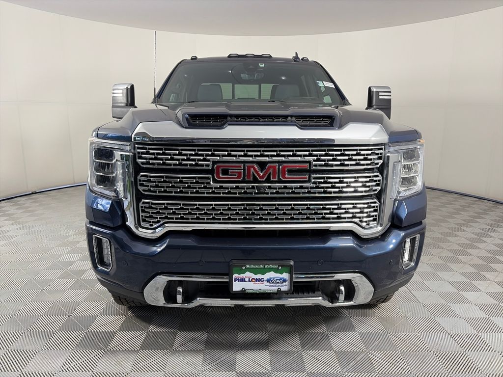 ENGINE, DURAMAX 6.6L TURBO-DIESEL V8, B20-DIESEL COMPATIBLE (445 hp [332 kW] @ 2800 rpm, 910 lb-ft of torque [1220 Nm] @ 1600 rpm) (Includes (K05) engine block heater.), TECHNOLOGY PACKAGE includes (UVS) HD Surround Vision, (DRZ) Rear Camera Mirror, (UVN) Bed View Camera and (UV6) Multi-color 15 Diagonal Head-Up Display, LPO, ALL-WEATHER FLOOR LINER, 1ST AND 2ND ROWS, AUDIO SYSTEM, PREMIUM GMC INFOTAINMENT SYSTEM WITH NAVIGATION AND 8 DIAGONAL COLOR TOUCH-SCREEN includes multi-touch display, AM/FM stereo, Bluetooth® streaming audio for music and most phones; featuring Android Auto® and Apple CarPlay® capability for compatible phones, advanced voice recognition, in-vehicle apps, personalized profiles for infotainment and vehicle settings. Includes greater memory. (STD) (Includes (PZ8) Hitch Guidance with hitch view.), TRANSMISSION, ALLISON 10-SPEED AUTOMATIC. GMC Denali with Pacific Blue Metallic exterior and Dark Walnut/Dark Ash Grey interior features a 8 Cylinder Engine with 401 HP at 5200 RPM*.