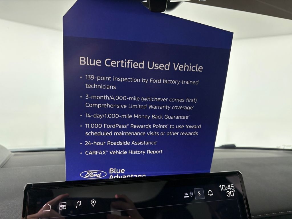 139 point vehicle inspection performed by an ASE Certified technician 3-month/4,000-mile Comprehensive Limited Warranty coverage that is fully competitive with other online retailers Blue Certification includes 11,000 FordPass Rewards Points For other manufacturers not listed above, Comprehensive Coverage is provided for 3 months or 4,000 miles, whichever comes first, from the signature date of the Ford Blue Advantage â" Blue Certified purchase. Comprehensive Limited Warranty covering 1,000+ components Travel expense reimbursement Rental car reimbursement SiriusXM 3 month tria. Recent Arrival! Odometer is 1419 miles below market average! 70/59 City/Highway MPG