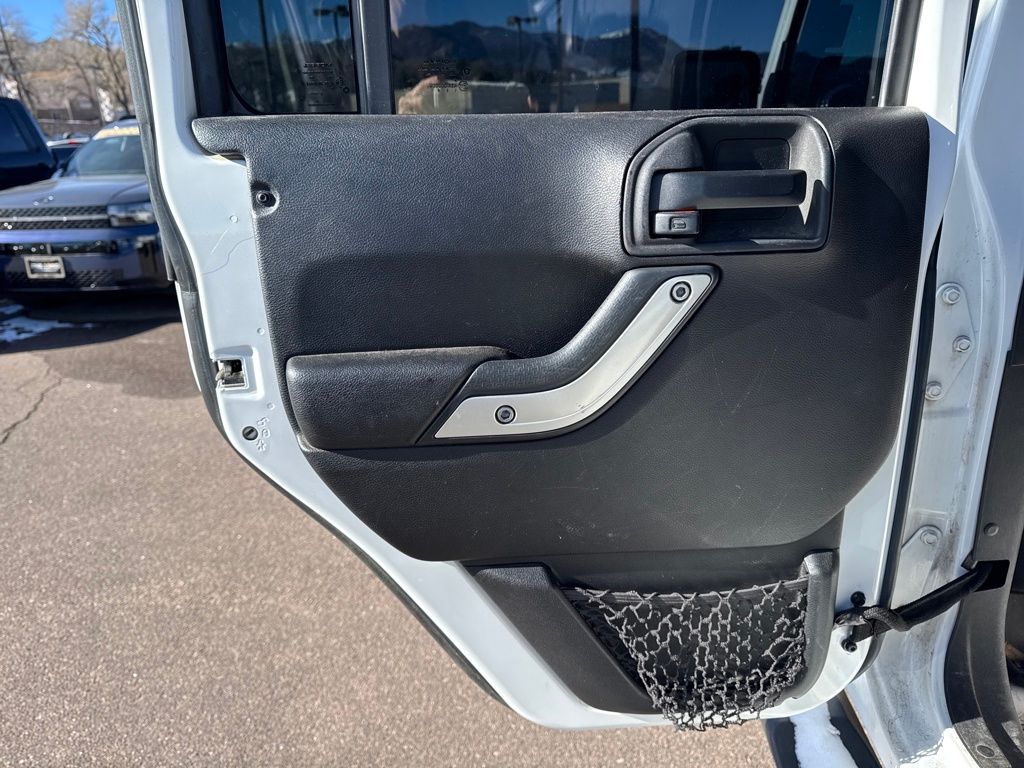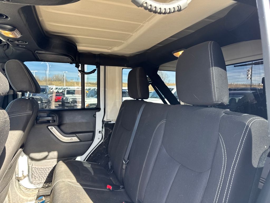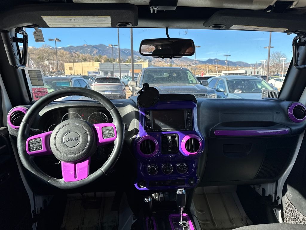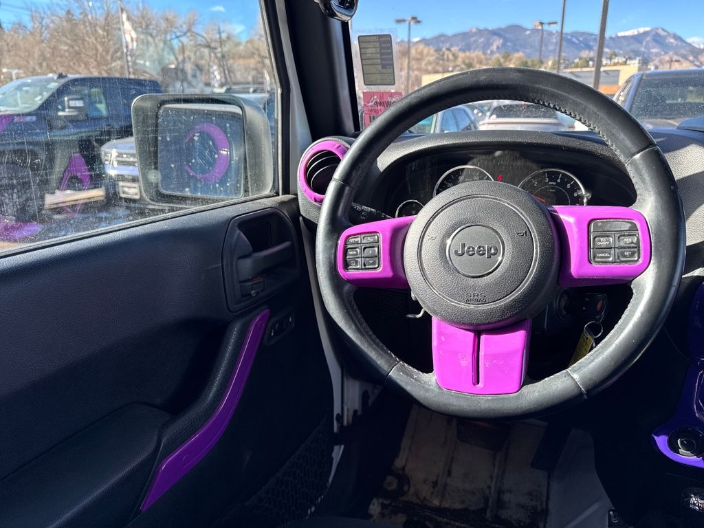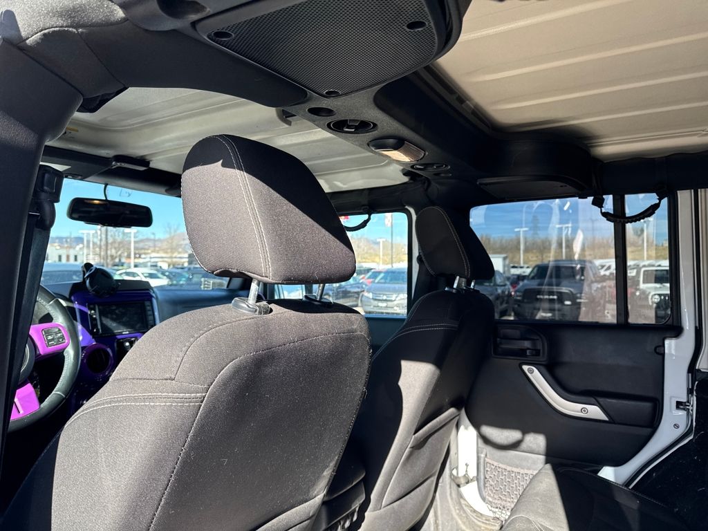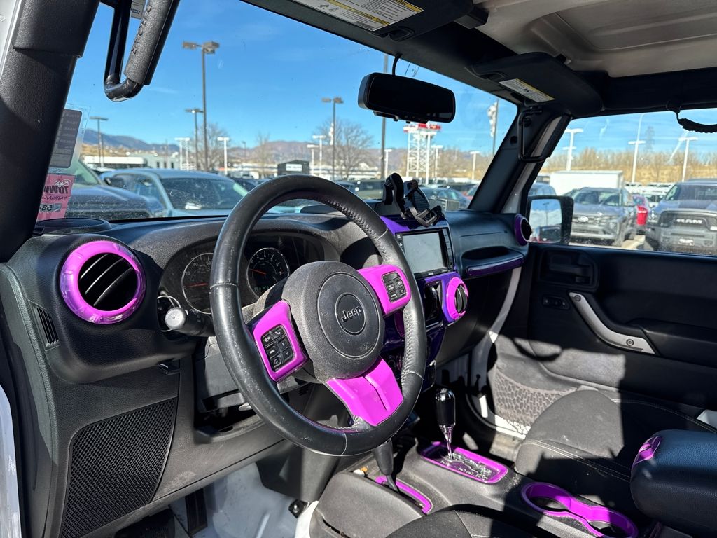 Connectivity Group (Tire Pressure Monitoring Display and Vehicle Information Center), Quick Order Package 24G, 18" x 7.5" Polished Satin Carbon Wheels, 3.21 Rear Axle Ratio, 4-Wheel Disc Brakes, 40GB Hard Drive w/20GB Available, 5-Year SIRIUSXM Traffic Service, 5-Year SIRIUSXM Travel Link Service, 8 Speakers, ABS brakes, Air Conditioning, Air Conditioning w/Auto Temperature Control, Air Filtering, Alloy wheels, AM/FM radio, Audio Jack Input for Mobile Devices, Auto-dimming Rear-View mirror, Black 3-Piece Hard Top, Brake assist, CD player, Cloth Bucket Seats, Compass, Delete Sunrider Soft Top, Driver door bin, Driver vanity mirror, Dual front impact airbags, Electronic Stability Control, Freedom Panel Storage Bag, Front anti-roll bar, Front Bucket Seats, Front Center Armrest w/Storage, Front fog lights, Front reading lights, Fully automatic headlights, Heated door mirrors, Heavy Duty Suspension w/Gas Shocks, Humidity Sensor, Illuminated entry, Integrated roll-over protection, Integrated Voice Command w/Bluetooth, Leather steering wheel, Leather Wrapped Steering Wheel, Low tire pressure warning, Occupant sensing airbag, Outside temperature display, Panic alarm, Passenger door bin, Passenger vanity mirror, Power door mirrors, Power steering, Power windows, Radio data system, Radio: Uconnect 130 AM/FM/CD/MP3, Radio: Uconnect 730N CD/DVD/MP3/HDD/NAV, Rear anti-roll bar, Rear Window Defroster, Rear Window Wiper/Washer, Remote keyless entry, Remote USB Port, Security system, SIRIUSXM Traffic, SIRIUSXM Travel Link, Speed control, Split folding rear seat, Steering wheel mounted audio controls, Sunrider Soft Top, Tachometer, Tilt steering wheel, Traction control, Trip computer, Uconnect Voice Command w/Bluetooth, and Variably intermittent wipers.
