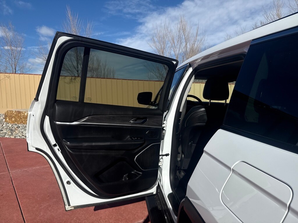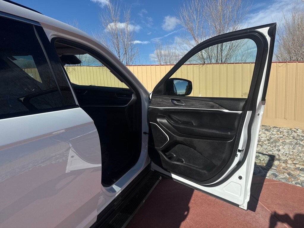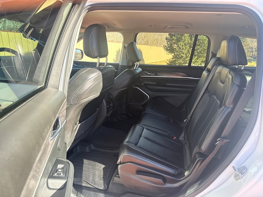 Quick Order Package 22E, 10.1" Touchscreen Display, 2nd Row 60/40 Bench w/Manual Tip/Slide, 2nd Row Seat Center Armrest/Cupholders, 3 Rear Seat Head Restraints, 3.45 Rear Axle Ratio, 3rd row seats: split-bench, 4-Wheel Disc Brakes, 506 Watt Amplifier, 6 Speakers, 7-Passenger Seating, 9 Amplified Speakers w/Subwoofer, ABS brakes, Air Conditioning, Alloy wheels, AM/FM radio: SiriusXM w/360L, Anti-whiplash front head restraints, Apple CarPlay, Apple CarPlay/Android Auto, Audio memory, Auto High-beam Headlights, Automatic temperature control, Brake assist, Bridgestone Brand Tires, Bumpers: body-color, Capri Leather Seats, Center Rear 3-Point Seat Belt, Compass, Connected Travel & Traffic Services, Connectivity - US/Canada, Delay-off headlights, Disassociated Touchscreen Display, Driver door bin, Driver vanity mirror, Dual front impact airbags, Dual front side impact airbags, Electronic Stability Control, Emergency communication system, Four wheel independent suspension, Front anti-roll bar, Front Bucket Seats, Front Center Armrest w/Storage, Front dual zone A/C, Front fog lights, Front reading lights, Fully automatic headlights, Garage door transmitter, Google Android Auto, GPS Antenna Input, GPS Navigation, HD Radio, Heated door mirrors, Heated front seats, Heated rear seats, Heated steering wheel, Illuminated entry, Integrated Center Stack Radio, Integrated Voice Command w/Bluetooth, Knee airbag, Leather steering wheel, Low tire pressure warning, Manual Fold Seatbacks, Memory seat, Normal Duty Suspension, Occupant sensing airbag, Outside temperature display, Overhead airbag, Overhead console, Panic alarm, ParkView Rear Back-Up Camera, Passenger door bin, Passenger vanity mirror, Power door mirrors, Power driver seat, Power Liftgate, Power passenger seat, Power steering, Power windows, Radio data system, Radio: Uconnect 5 Nav w/10.1" Display, Radio: Uconnect 5 w/8.4" Display, Rear air conditioning, Rear anti-roll bar, Rear reading lights, Rear window defroster, Rear window wiper, Reclining 3rd row seat, Remote keyless entry, Roof rack: rails only, Security system, SiriusXM Satellite Radio, SiriusXM w/360L, Speed control, Speed-Sensitive Wipers, Split folding rear seat, Spoiler, Steering wheel mounted audio controls, Tachometer, Telescoping steering wheel, Tilt steering wheel, Traction control, Trip computer, Turn signal indicator mirrors, USB Host Flip, Variably intermittent wipers, Voltmeter, Wheels: 18" x 8.0" Fully Painted Aluminum 2, and Wheels: 20" x 8.5" Polished/Painted Aluminum (DISC)