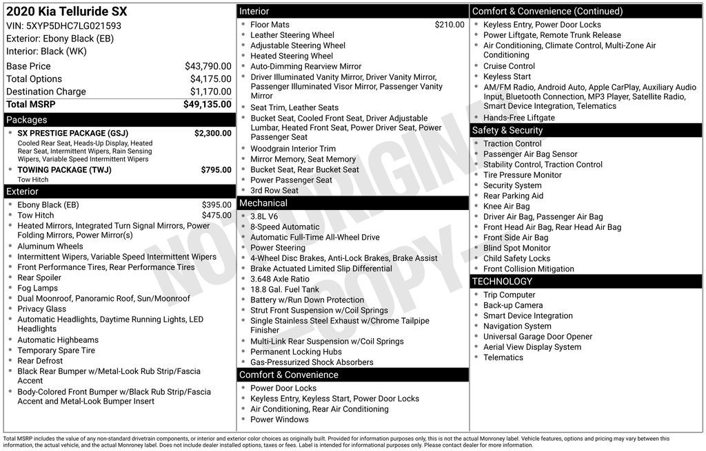 Odometer is 2936 miles below market average! Ebony Black 2020 Kia Telluride SX AWD 8-Speed Automatic 3.8L V6 DGI DOHC Dual CVVT