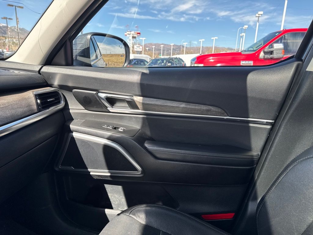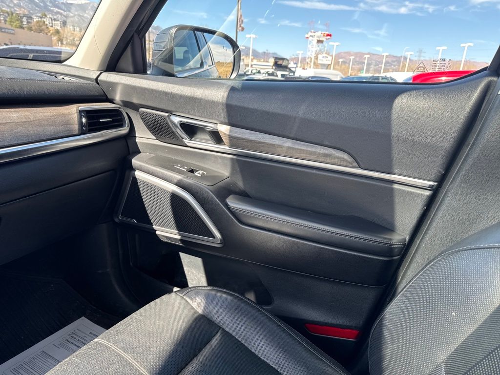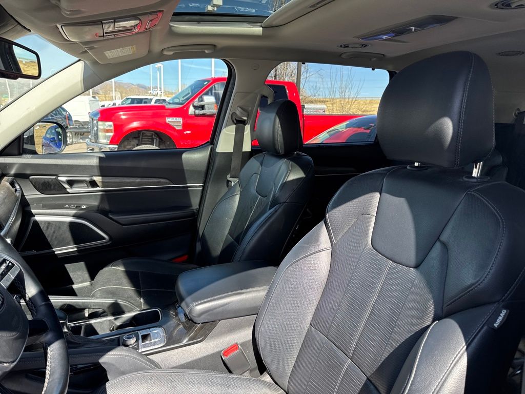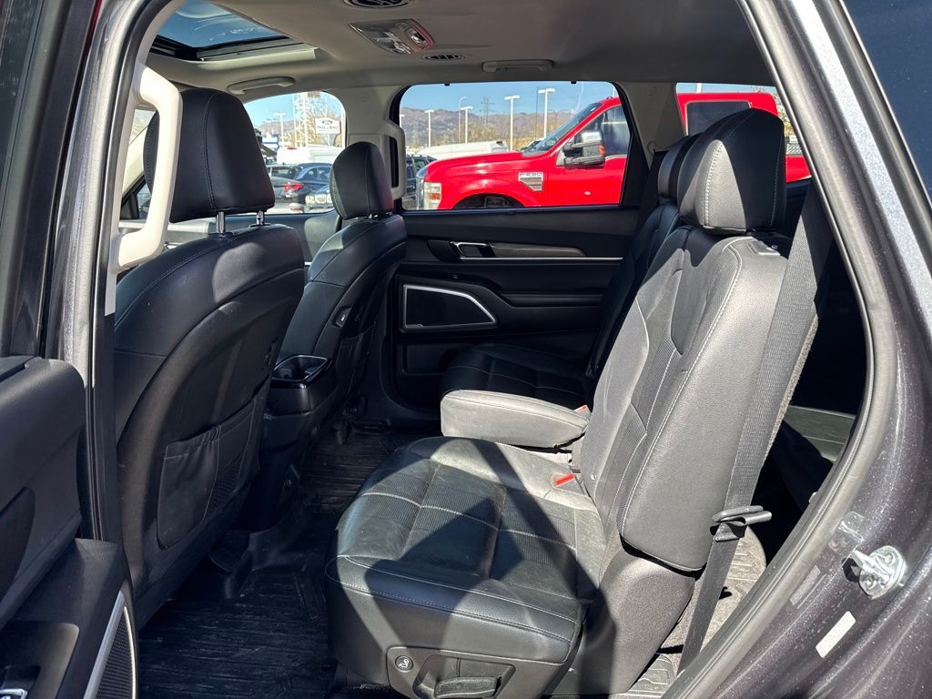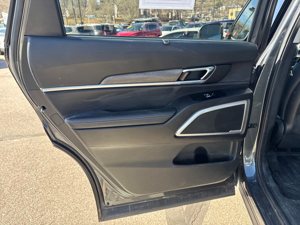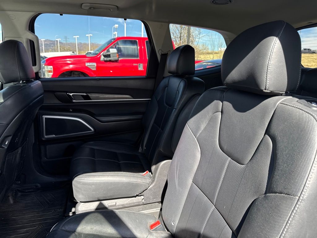 EX Premium Package (20" Alloy Wheels, 20" Wheels, Anodized Roof Rails, and Captain's Chairs), Towing Package (Self-Leveling Rear Suspension and Tow Hitch w/Harness), 3.648 Axle Ratio, 3rd row seats: split-bench, 4-Wheel Disc Brakes, 6 Speakers, ABS brakes, Air Conditioning, Alloy wheels, AM/FM radio: SiriusXM, Apple CarPlay & Android Auto, Auto-dimming Rear-View mirror, Automatic temperature control, Brake assist, Bumpers: body-color, Compass, Delay-off headlights, Driver door bin, Driver vanity mirror, Dual front impact airbags, Dual front side impact airbags, Electronic Stability Control, Emergency communication system: 911 Connect, Four wheel independent suspension, Front anti-roll bar, Front Bucket Seats, Front Center Armrest, Front dual zone A/C, Front reading lights, Fully automatic headlights, Heated & Ventilated Front Bucket Seats, Heated door mirrors, Heated front seats, Illuminated entry, Knee airbag, Leather Shift Knob, Leather steering wheel, Leather-Trimmed Upholstery, Low tire pressure warning, Navigation System, Occupant sensing airbag, Outside temperature display, Overhead airbag, Overhead console, Panic alarm, Passenger door bin, Passenger vanity mirror, Power door mirrors, Power driver seat, Power Liftgate, Power moonroof, Power passenger seat, Power steering, Power windows, Radio data system, Radio: AM/FM/MP3/SiriusXM Audio System, Rear air conditioning, Rear anti-roll bar, Rear audio controls, Rear reading lights, Rear seat center armrest, Rear window defroster, Rear window wiper, Reclining 3rd row seat, Remote keyless entry, Roof rack: rails only, Security system, Speed control, Speed-sensing steering, Split folding rear seat, Spoiler, Steering wheel mounted audio controls, Tachometer, Telescoping steering wheel, Tilt steering wheel, Traction control, Trip computer, Turn signal indicator mirrors, Variably intermittent wipers, Ventilated front seats, and Wheels: 7.5" x 18" Machined Finish Alloy.