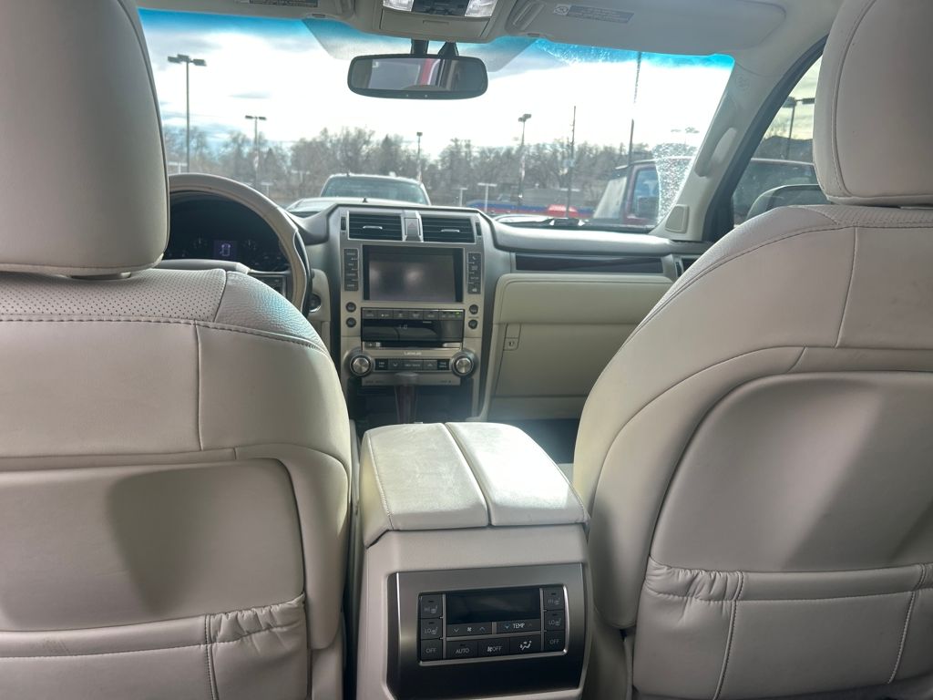3.909 Axle Ratio, 3rd row seats: split-bench, 4-Wheel Disc Brakes, 9 Speakers, ABS brakes, Air Conditioning, Alloy wheels, AM/FM radio: SiriusXM, Anti-whiplash front head restraints, Auto tilt-away steering wheel, Auto-dimming Rear-View mirror, Automatic temperature control, Bodyside moldings, Brake assist, Bumpers: body-color, CD player, Compass, Delay-off headlights, Driver door bin, Driver vanity mirror, Driver's Seat Mounted Armrest, Dual front impact airbags, Dual front side impact airbags, Electronic Stability Control, Emergency communication system, Exterior Parking Camera Rear, Front anti-roll bar, Front Bucket Seats, Front dual zone A/C, Front reading lights, Front wheel independent suspension, Fully automatic headlights, Garage door transmitter: HomeLink, Heated door mirrors, Illuminated entry, Illuminated running boards, Knee airbag, Leather Shift Knob, Leather steering wheel, Low tire pressure warning, Memory seat, Occupant sensing airbag, Outside temperature display, Overhead airbag, Overhead console, Panic alarm, Passenger door bin, Passenger seat mounted armrest, Passenger vanity mirror, Power door mirrors, Power driver seat, Power moonroof, Power passenger seat, Power steering, Power windows, Radio data system, Radio: AM/FM Lexus Multimedia System, Rear anti-roll bar, Rear reading lights, Rear seat center armrest, Rear side impact airbag, Rear window defroster, Rear window wiper, Remote keyless entry, Roof rack: rails only, Security system, Speed control, Speed-sensing steering, Split folding rear seat, Spoiler, Steering wheel memory, Steering wheel mounted audio controls, Synthetic Leather NuLuxe Seat Trim, Tachometer, Telescoping steering wheel, Tilt steering wheel, Traction control, Trip computer, Turn signal indicator mirrors, Variably intermittent wipers, and Wheels: 18" x 7.5J 6-Spoke Aluminum Alloy.