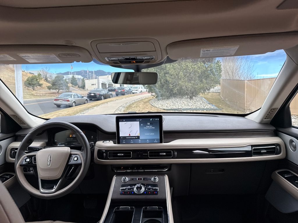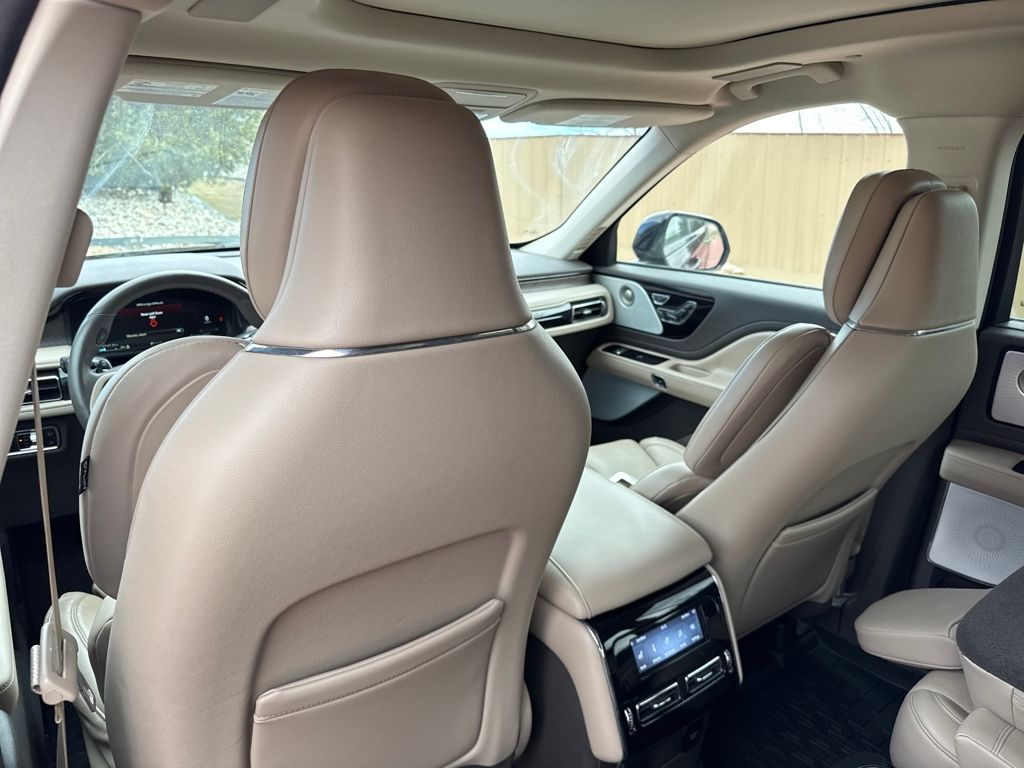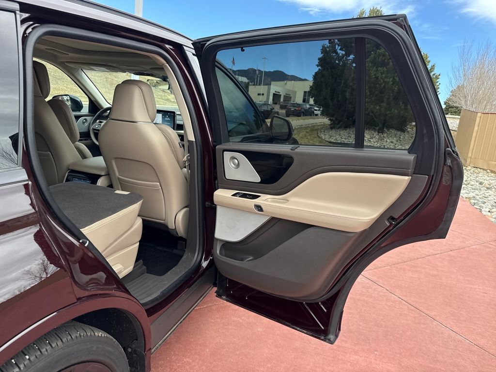 Class IV Trailer Tow Package (4-Pin & 7-Pin Connectors, Blind Spot Information System, Class IV Hitch & Wiring, Smart Trailer Tow, and Trailer Sway Control), Elements Package Plus (Auto Air Refresh, Auto Heated/Ventilated Driver & Passenger Seats, Heated Steering Wheel, Heated VisioBlade Wipers, and Heated/Ventilated 2nd Row Outboard Seats), Equipment Group 201A (Head-Up Display and Phone As A Key), Illumination Package (Adaptive Pixel LED Headlamps, Illuminated Lincoln Star in Grille, and LED Fog Lamps), Jet Package (Black Exterior Elements, Body-Color Exterior Elements, and Wheels: 22" Black Aluminum), Lincoln Co-Pilot360 1.5 Plus (Active Park Assist 2.0, Evasive Steering Assist, Intelligent Adaptive Cruise Control, and Reverse Brake Assist), Luxury Package (30-Way Perfect Position Seats w/Active Motion, Radio: Revel Ultima 3D Audio System w/28 Speakers, and Rear Door Sunshades), Navigation System, 14 Speakers, 3.58 Axle Ratio, 3rd row seats: split-bench, 4-Wheel Disc Brakes, ABS brakes, Air Conditioning, All-Weather 1st & 2nd Row Floor Liners (16A), Alloy wheels, AM/FM radio: SiriusXM, Audio memory, Auto High-beam Headlights, Auto-dimming door mirrors, Auto-dimming Rear-View mirror, Automatic temperature control, Brake assist, Bumpers: body-color, Compass, Delay-off headlights, Driver door bin, Driver vanity mirror, Dual front impact airbags, Dual front side impact airbags, Electronic Stability Control, Emergency communication system, Four wheel independent suspension, Front anti-roll bar, Front Bucket Seats, Front Center Armrest, Front dual zone A/C, Front reading lights, Full Rear Console, Fully automatic headlights, Garage door transmitter, Hands-Free Liftgate Delete, Heated door mirrors, Heated front seats, HVAC memory, Illuminated entry, Knee airbag, Leather steering wheel, Low tire pressure warning, Memory seat, Occupant sensing airbag, Outside temperature display, Overhead airbag, Overhead console, Panic alarm, Passenger door bin, Passenger vanity mirror, Power door mirrors, Power driver seat, Power Liftgate, Power moonroof: Panoramic Vista Roof, Power passenger seat, Power steering, Power windows, Premium Lthr Heated/Ventilated Fnt Captain's Chairs, Radio data system, Radio: Revel AM/FM Audio System w/14 Speakers, Rain sensing wipers, Rear air conditioning, Rear anti-roll bar, Rear audio controls, Rear dual zone A/C, Rear reading lights, Rear window defroster, Rear window wiper, Remote keyless entry, Security system, Siriu