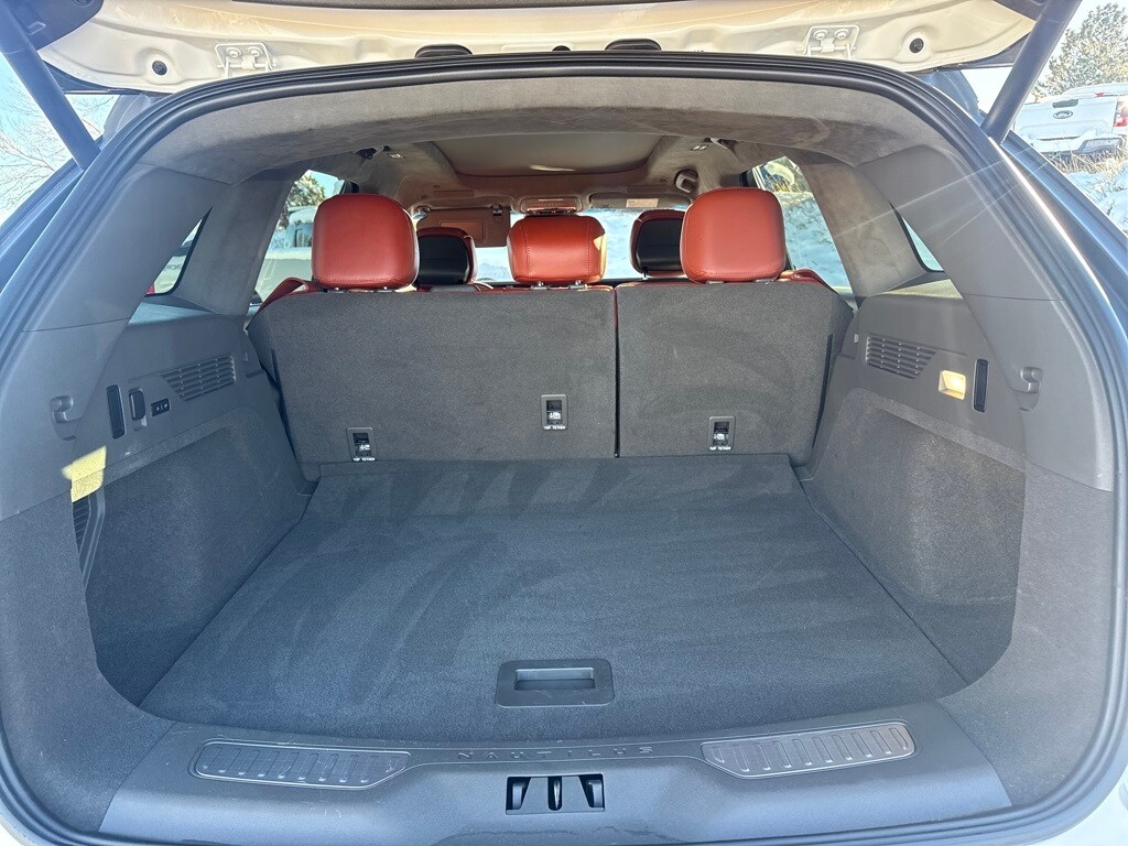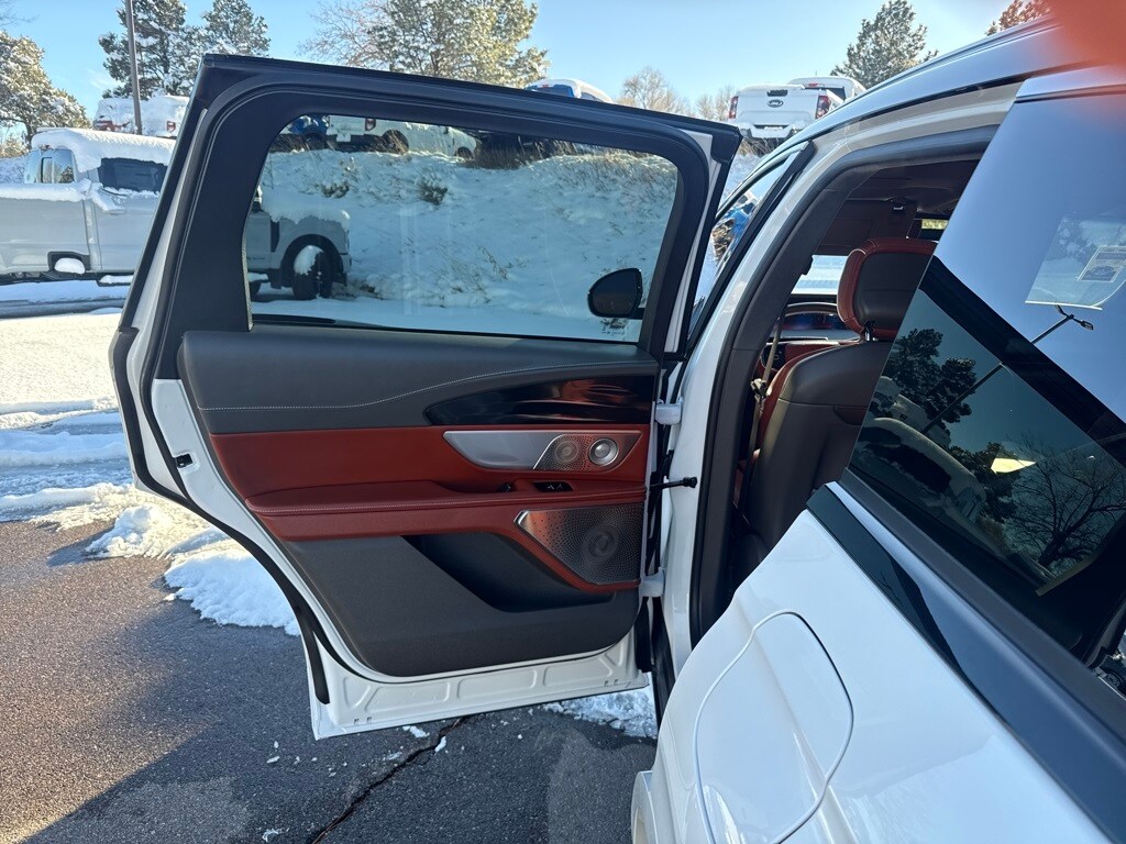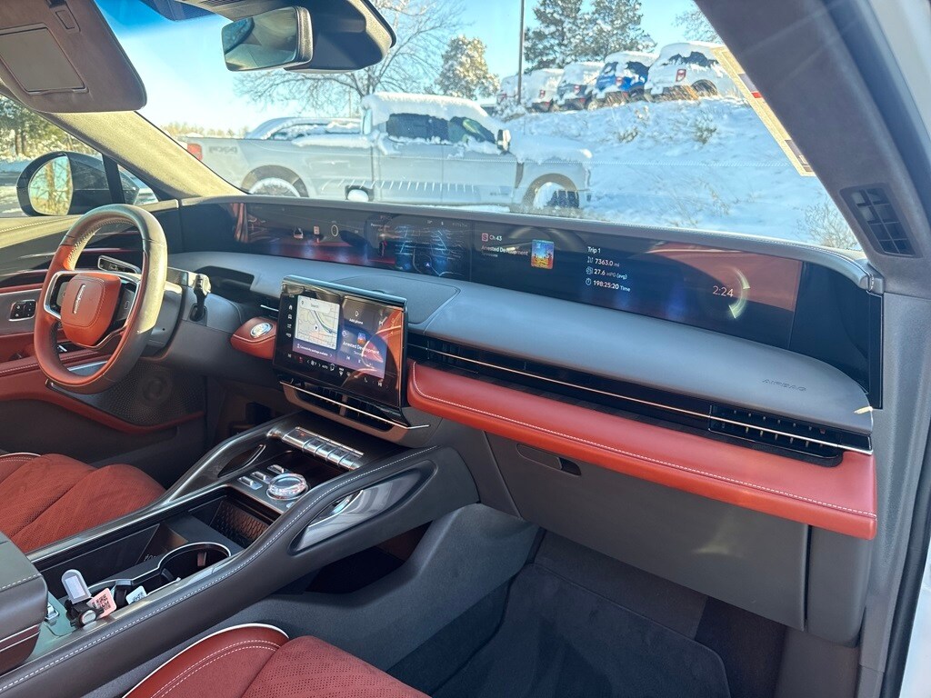 Chalet Theme (Appliques - Silverwood w/Logo Decal, Floor Carpet/Mats - Ebony Velour w/Metal Cuff Accent, Headliner - Cashmere, and Leather-Wrapped Interior - Cashmere Sanctuary Lthr), Equipment Group 800A, 28 Speakers, 3.81 Axle Ratio, 4-Wheel Disc Brakes, ABS brakes, Adaptive suspension, Air Conditioning, Alexa Built-In, Alloy wheels, AM/FM radio: SiriusXM with 360L, Apple CarPlay/Android Auto, Appliques - Herringbone Marquetry Walnut, Auto High-beam Headlights, Auto tilt-away steering wheel, Auto-dimming door mirrors, Auto-dimming Rear-View mirror, Automatic temperature control, Brake assist, Bumpers: body-color, Compass, Delay-off headlights, Driver door bin, Driver vanity mirror, Dual front impact airbags, Dual front side impact airbags, Electronic Stability Control, Emergency communication system: 911 Assist, Exterior Parking Camera Rear, Four wheel independent suspension, Front anti-roll bar, Front Bucket Seats, Front Center Armrest w/Storage, Front dual zone A/C, Front reading lights, Fully automatic headlights, Garage door transmitter: HomeLink, Heated door mirrors, Heated front seats, Heated rear seats, Heated steering wheel, Htd/Vent Sanctuary Leather Fr Captains Chairs, Illuminated entry, Knee airbag, Leather steering wheel, Low tire pressure warning, Lthr-Wrapped Int - Harvest Bronze w/Smoked Truffle, Memory seat, Navigation System, Occupant sensing airbag, Outside temperature display, Overhead airbag, Overhead console, Panic alarm, Passenger door bin, Passenger vanity mirror, Power door mirrors, Power driver seat, Power moonroof: Panoramic Vista Roof, Power passenger seat, Power steering, Power windows, Radio data system, Radio: AM/FM/HD w/Revel Ultima Audio System, Rain sensing wipers, Rear anti-roll bar, Rear reading lights, Rear seat center armrest, Rear window defroster, Rear window wiper, Remote keyless entry, Security system, Speed control, Speed-sensing steering, Speed-Sensitive Wipers, Split folding rear seat, Spoiler, Steering wheel memory, Steering wheel mounted audio controls, Tachometer, Telescoping steering wheel, Tilt steering wheel, Traction control, Trip computer, Turn signal indicator mirrors, Variably intermittent wipers, Ventilated front seats, and Wheels: 22" Bright Machined Alum w/Ebony Ptd Pkts.