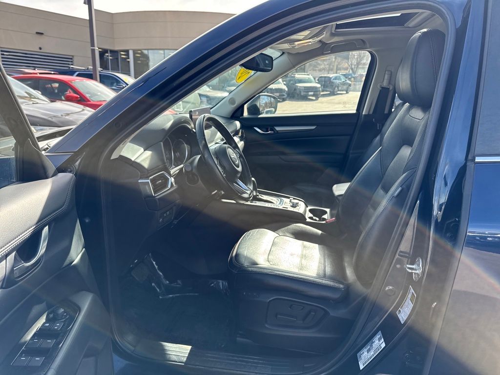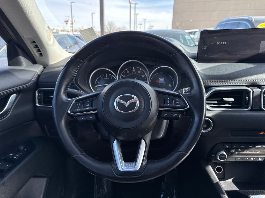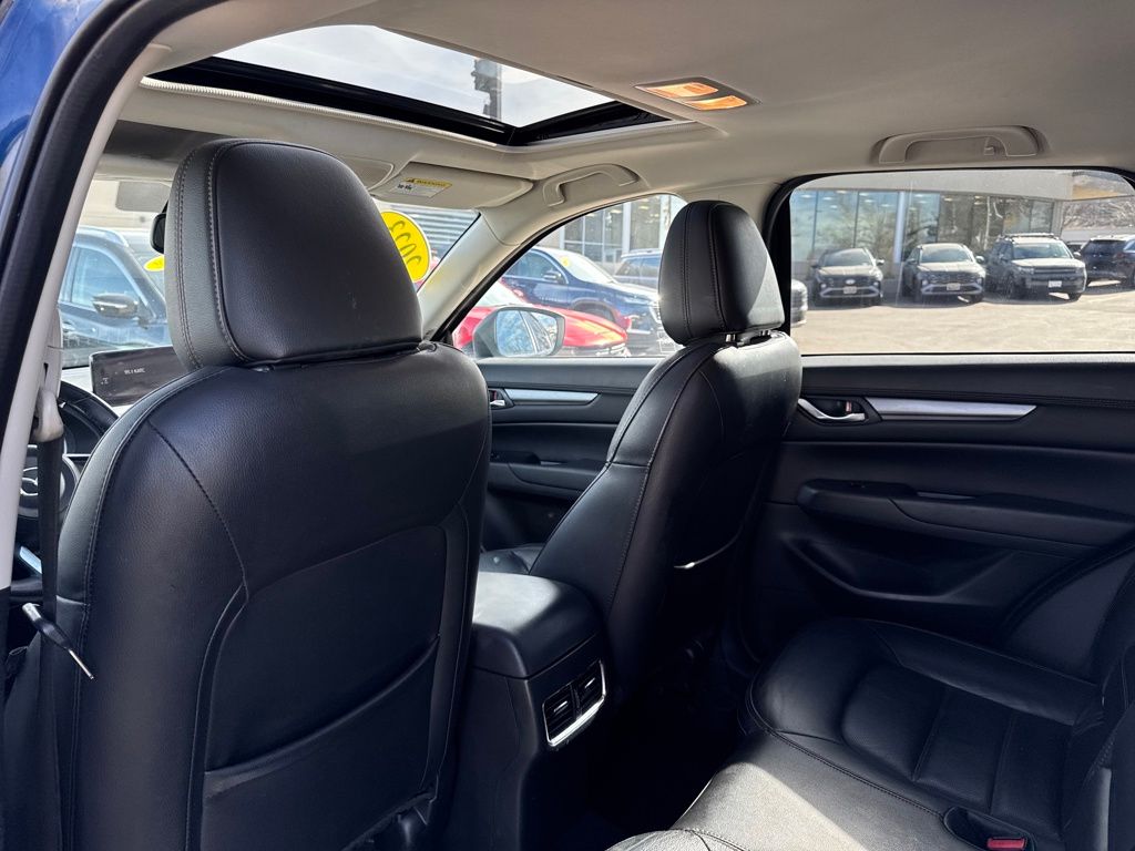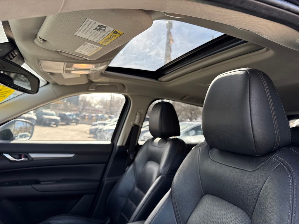 4-Wheel Disc Brakes, 4.624 Axle Ratio, 6 Speakers, ABS brakes, Air Conditioning, Alloy wheels, AM/FM radio, AppLink/Apple CarPlay and Android Auto, Auto High-beam Headlights, Auto-dimming Rear-View mirror, Automatic temperature control, Brake assist, Bumpers: body-color, Delay-off headlights, Driver door bin, Driver vanity mirror, Dual front impact airbags, Dual front side impact airbags, E911 Automatic Emergency Notification, Electronic Stability Control, Emergency communication system: MAZDA CONNECT, Exterior Parking Camera Rear, Four wheel independent suspension, Front anti-roll bar, Front Bucket Seats, Front Center Armrest w/Storage, Front dual zone A/C, Front reading lights, Fully automatic headlights, Garage door transmitter: HomeLink, Heated Front Bucket Seats, Heated front seats, Illuminated entry, Infotainment System Voice Command, Leather Seat Trim, Leather Shift Knob, Low tire pressure warning, Memory seat, Multifunction Commander Control, Occupant sensing airbag, Outside temperature display, Overhead airbag, Overhead console, Pandora, Panic alarm, Passenger door bin, Passenger vanity mirror, Power door mirrors, Power driver seat, Power Liftgate, Power moonroof, Power passenger seat, Power steering, Power windows, Radio Broadcast Data System Program Information, Radio data system, Radio: AM/FM/HD Audio System, Rain sensing wipers, Rear anti-roll bar, Rear reading lights, Rear seat center armrest, Rear window defroster, Rear window wiper, Remote keyless entry, SMS Text Msg Audio Delivery & Reply, Speed control, Speed-sensing steering, Split folding rear seat, Spoiler, Steering wheel mounted audio controls, Tachometer, Telescoping steering wheel, Tilt steering wheel, Traction control, Trip computer, Turn signal indicator mirrors, Variably intermittent wipers, and Wheels: 17" x 7J Aluminum Alloy.