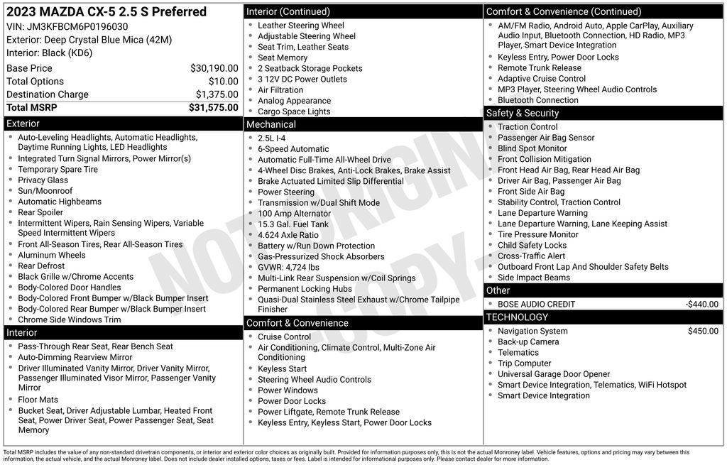 Deep Crystal Blue Mica 2023 Mazda CX-5 2.5 S Preferred Package AWD 6-Speed Automatic SKYACTIV® 2.5L 4-Cylinder DOHC 16V 24/30 City/Highway MPG