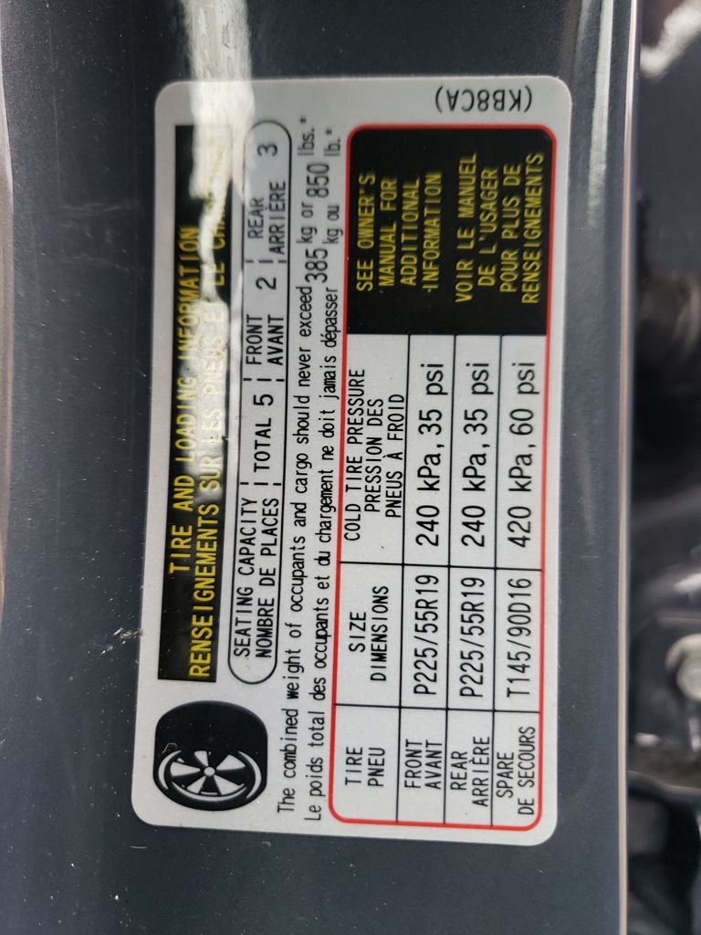 - Front tires: 225/55VR19.0