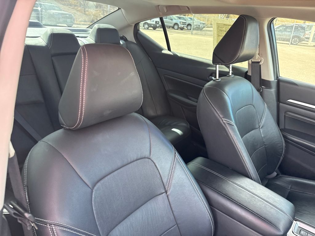 CVT with Xtronic, 17" Machined Alloy Wheels, 4-Wheel Disc Brakes, 9 Speakers, ABS brakes, Air Conditioning, Alloy wheels, AM/FM radio, Auto High-beam Headlights, Automatic temperature control, Blind Spot Warning, Body-Colored Splash Guards, Brake assist, Bumpers: body-color, Chrome Bumper Protector, Compass, Delay-off headlights, Driver door bin, Driver vanity mirror, Dual front impact airbags, Dual front side impact airbags, Electronic Stability Control, Emergency communication system: NissanConnect Services, Floor Mats/Trunk Mat/Hideaway Net, Four wheel independent suspension, Front anti-roll bar, Front Bucket Seats, Front Center Armrest, Front dual zone A/C, Front fog lights, Front reading lights, Fully automatic headlights, Heated door mirrors, Heated Front Bucket Seats, Heated front seats, Heated steering wheel, Illuminated entry, Illuminated Kick Plates, Knee airbag, Leather Shift Knob, Leather-Appointed Seat Trim, Low tire pressure warning, Navigation System, NissanConnect featuring Apple CarPlay and Android Auto, Occupant sensing airbag, Outside temperature display, Overhead airbag, Overhead console, Panic alarm, Passenger door bin, Passenger vanity mirror, Power door mirrors, Power driver seat, Power moonroof, Power steering, Power windows, Radio data system, Radio: AM/FM w/Bose Premium Sound System, Rear anti-roll bar, Rear Parking Sensors, Rear reading lights, Rear seat center armrest, Rear side impact airbag, Rear window defroster, Remote keyless entry, Security system, Speed control, Speed-sensing steering, Speed-Sensitive Wipers, Split folding rear seat, Sport steering wheel, Steering wheel mounted audio controls, Tachometer, Telescoping steering wheel, Tilt steering wheel, Traction control, Trip computer, Trunk Organizer Tray, Turn signal indicator mirrors, and Variably intermittent wipers.