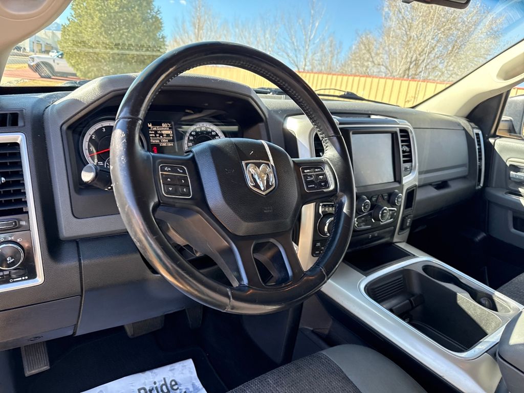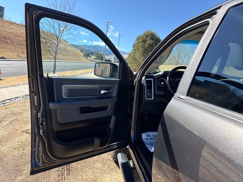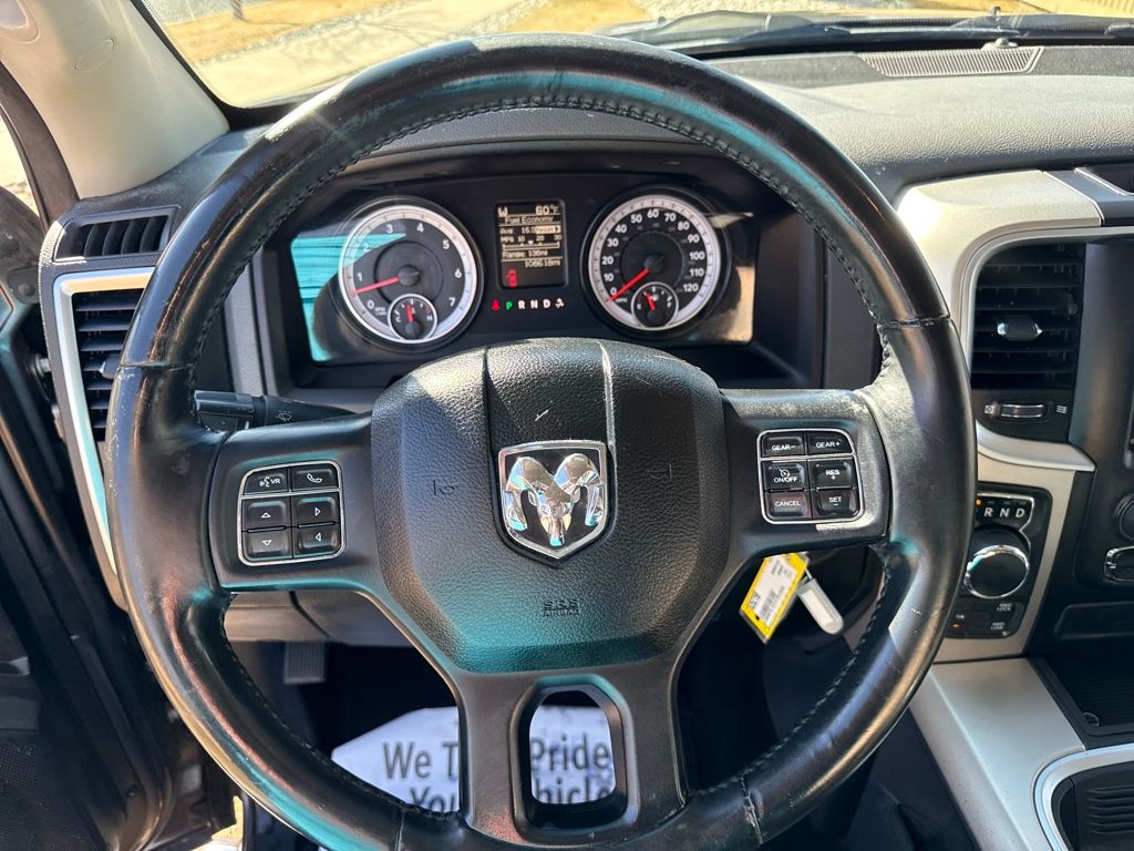 15/21 City/Highway MPG Odometer is 23285 miles below market average! Active Grille Shutters, Air Conditioning, Big Horn Badge, Big Horn Regional Package, Bright/Bright Billets Grille, Bumpers: chrome, Class IV Receiver Hitch, Electric Shift-On-Demand Transfer Case, Fog Lamps, Leather Wrapped Steering Wheel, Media Hub (SD, USB, AUX), Premium Cloth 40/20/40 Bench Seat, Quick Order Package 26Z Big Horn, Steering Wheel Mounted Audio Controls, Wheels: 20" x 8" Aluminum Chrome Clad.