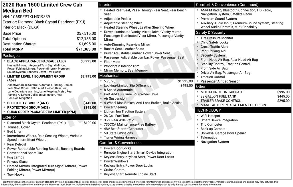 In conclusion, the 2020 Ram 1500 Limited Crew Cab 4x4 is a perfect blend of luxury, safety, and capability. Whether youre commuting in the city or tackling tough terrains, this truck is ready to handle it all while keeping you comfortable and connected, thanks to its advanced technology and premium features. Donât miss the chance to experience the ultimate driving experience!