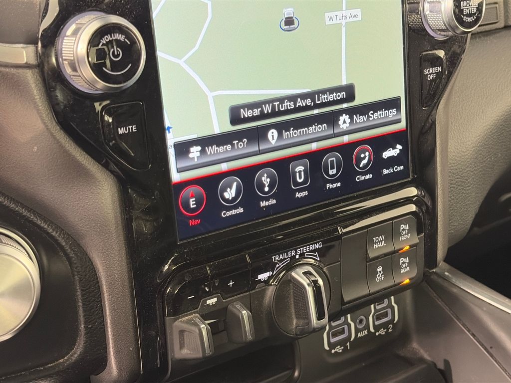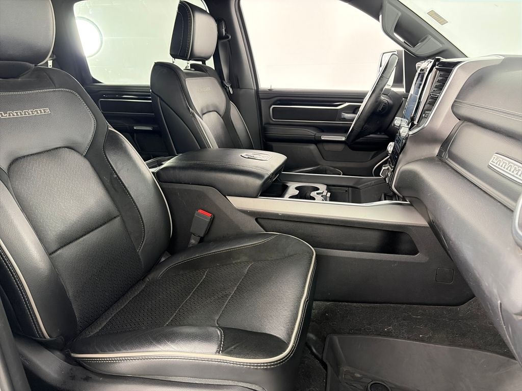 LARAMIE LEVEL 2 EQUIPMENT GROUP Blind Spot & Cross Path Detection, Rain Sensitive Windshield Wipers, ParkSense Front/Rear Park Assist w/Stop, Radio: Uconnect 4C Nav w/8.4 Display, Rear 60/40 Folding Split Recline Seat, Remote Tailgate Release, harman/kardon® 19 Speaker Premium Sound, Rear Underseat Compartment Storage, Auto High Beam Headlamp Control, Heated Second Row Seats, Tailgate Ajar Warning Lamp, Foam Bottle Insert (Door Trim Panel), Auto Dimming Exterior Passenger Mirror, NIGHT EDITION Accent Color Premium Power Mirrors, Black Headlamp Bezels, Sport Performance Hood, Body Color Door Handles, MOPAR Black Tubular Side Steps, Black Exterior Truck Badging, Black Interior Accents, Dual Exhaust w/Black Tips, Body Color Front Bumper, Grille Surround 3 Black Texture 2 Black, Auto Dimming Exterior Passenger Mirror, Body Color Rear Bumper w/Step Pads, Black Painted Exterior Mirrors Caps, ENGINE: 5.7L V8 HEMI MDS VVT ETORQUE Active Noise Control System, Heavy Duty Engine Cooling, GVWR: 7,100 lbs, Dual Rear Exhaust w/Bright Tips, HEMI Badge, RADIO: UCONNECT 12 W/NAVIGATION SiriusXM Traffic Plus, USB Host Flip, Disassociated Touchscreen Display, HD Radio, For Details, Visit DriveUconnect.com, 1-Yr SiriusXM Guardian Trial, 12 Touchscreen Display, GPS Navigation, SiriusXM Travel Link, 4G LTE Wi-Fi Hot Spot, SiriusXM w/360L, BLACK, LEATHER TRIMMED BUCKET SEATS Bucket Seats, Center Console Parts Module, Full Length Upgraded Floor Console, BED UTILITY GROUP MOPAR Spray In Bedliner, MOPAR 4 Adjustable Cargo Tie-Down Hooks, Pick-Up Box Lighting, MOPAR Deployable Bed Step, PROTECTION GROUP Transfer Case Skid Plate, Steering Gear Skid Plate, Front Suspension Skid Plate, Fuel Tank Skid Plate, Tow Hooks, TRANSMISSION: 8-SPEED AUTOMATIC (8HP75), ANTI-SPIN DIFFERENTIAL REAR AXLE. Ram Laramie with Billet Silver Metallic Clearcoat exterior and Black interior features a 8 Cylinder Engine with 305 HP at 6400 RPM*.