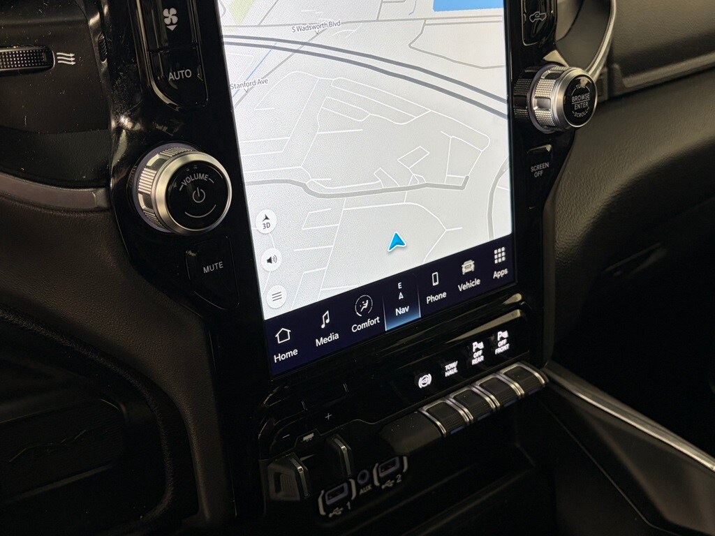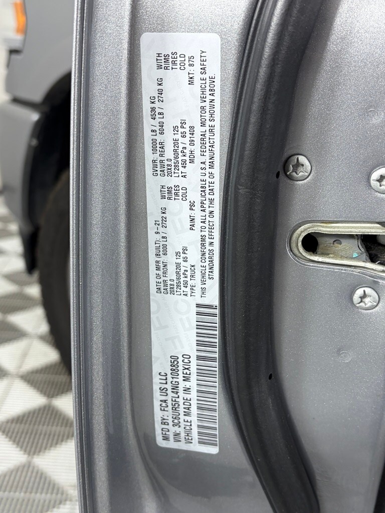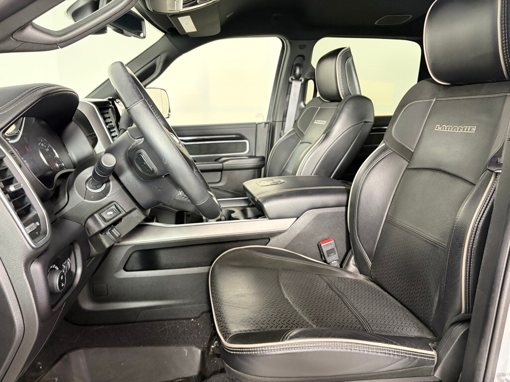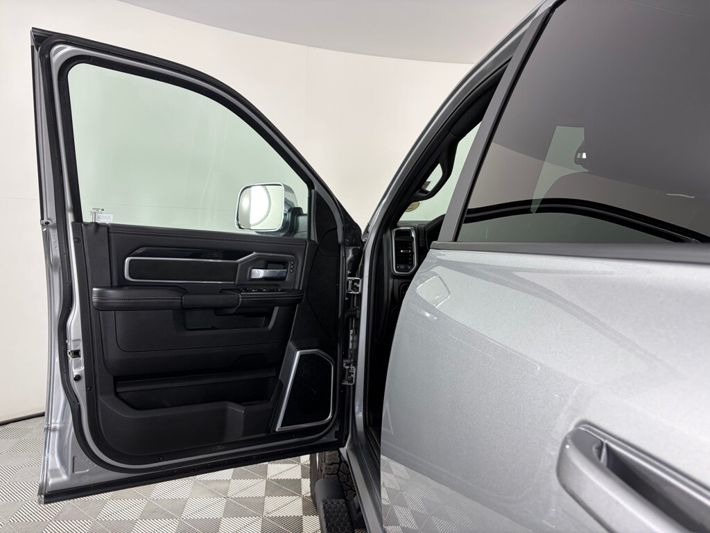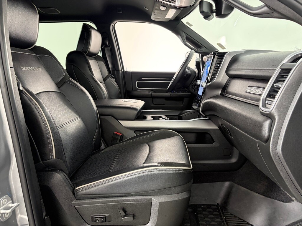 ENGINE: 6.7L I6 CUMMINS TURBO DIESEL Selective Catalytic Reduction (Urea), Dual 730 Amp Maintenance Free Batteries, Cummins Turbo Diesel Badge, Heavy Duty Engine Cooling, Supplemental Heater, 220 Amp Alternator, Tow Hooks, Diesel Exhaust Brake, Front Bumper Sight Shields, Capless Fuel Fill w/o Discriminator, Distribution Services Tracking, RADIO: UCONNECT 5 NAV W/12.0 DISPLAY Off-Road Information Pages, Disassociated Touchscreen Display, HD Radio, For Details, Visit DriveUconnect.com, For More Info, Call 800-643-2112, 12 Touchscreen Display, GPS Navigation, SiriusXM w/360L, All Radio Equipped Vehicles, Connected Travel & Traffic Services, All R1 High Radios, Alexa Built-In, LARAMIE LEVEL C EQUIPMENT GROUP Remote Tailgate Release, Auto High Beam Headlamp Control, Mirror-Mounted Aux Reverse Lamps, Rain Sensitive Windshield Wipers, Exterior Mirrors w/Memory, Power Adjustable Pedals w/Memory, Foam Bottle Insert (Door Trim Panel), 2nd Row In Floor Storage Bins, Radio/Driver Seat/Mirrors/Pedals Memory, Ventilated Front Seats, Power Multi-Function Manual Folding Mirrors, WHEELS: 20 X 8.0 POLISHED ALUMINUM Tires: LT285/60R20E OWL On/Off Road, Center Hub, MOPAR SPRAY IN BEDLINER, BLACK, LEATHER TRIMMED BUCKET SEATS Bucket Seats, High Back Seats, #1 Seat Foam Cushion, Folding Flat Load Floor Storage, Full Length Upgraded Floor Console, ANTI-SPIN DIFFERENTIAL REAR AXLE, TRANSMISSION: 6-SPEED AUTOMATIC (68RFE) Chrome Accent Shift Control. Ram Laramie with Billet Silver Metallic Clearcoat exterior and Black interior features a Straight 6 Cylinder Engine with 370 HP at 2800 RPM*.