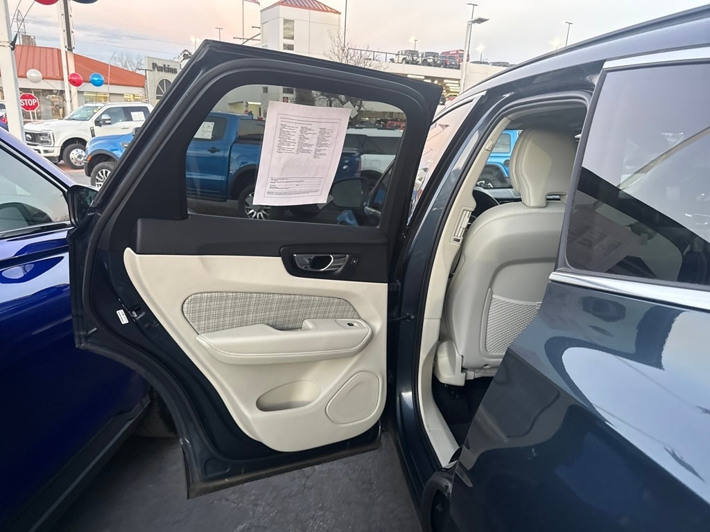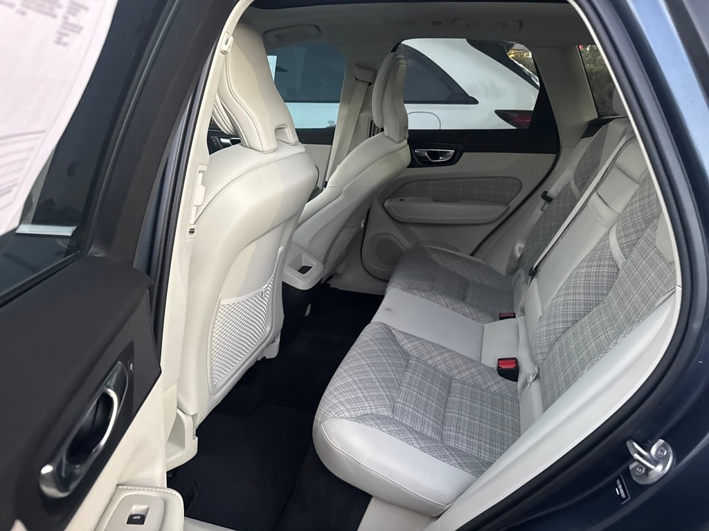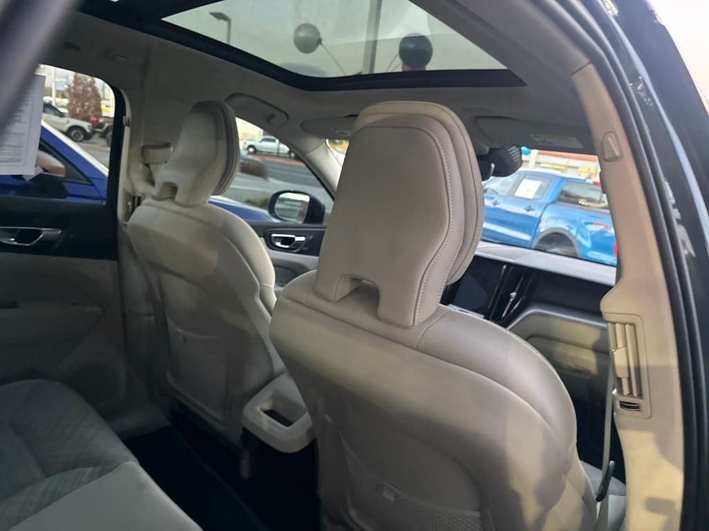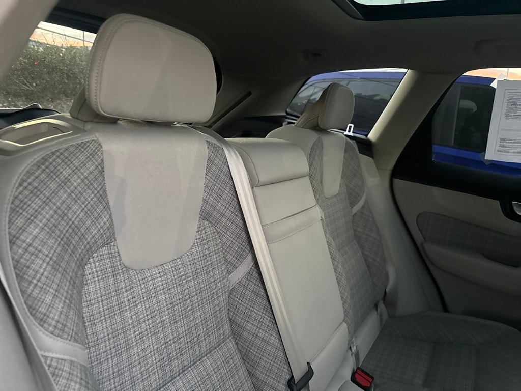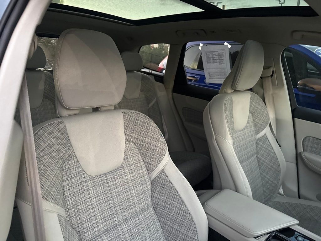 AWD, 10 Speakers, 4-Wheel Disc Brakes, ABS brakes, Air Conditioning, Alloy wheels, Anti-whiplash front head restraints, Auto High-beam Headlights, Auto-dimming door mirrors, Auto-dimming Rear-View mirror, Automatic temperature control, Blonde City Weave Textile Upholstery, Brake assist, Bumpers: body-color, Delay-off headlights, Driver door bin, Driver vanity mirror, Dual front impact airbags, Dual front side impact airbags, Electronic Stability Control, Emergency communication system: Volvo Cars App w/4 Year Subscription, Exterior Parking Camera Rear, Four wheel independent suspension, Front anti-roll bar, Front Bucket Seats, Front Center Armrest, Front dual zone A/C, Front fog lights, Front reading lights, Fully automatic headlights, Heated door mirrors, Heated Front Bucket Seats, Heated front seats, Illuminated entry, Knee airbag, Leather Shift Knob, Low tire pressure warning, Memory seat, Occupant sensing airbag, Outside temperature display, Overhead airbag, Panic alarm, Passenger door bin, Passenger vanity mirror, Power door mirrors, Power driver seat, Power moonroof, Power passenger seat, Power steering, Power windows, Radio data system, Radio: High Performance Audio System, Rain sensing wipers, Rear anti-roll bar, Rear fog lights, Rear reading lights, Rear seat center armrest, Rear window defroster, Rear window wiper, Remote keyless entry, Security system, Speed control, Split folding rear seat, Spoiler, Steering wheel mounted audio controls, Tachometer, Telescoping steering wheel, Tilt steering wheel, Traction control, Trip computer, Turn signal indicator mirrors, Variably intermittent wipers, and Wheels: 18" 5-Spoke Silver Alloy.