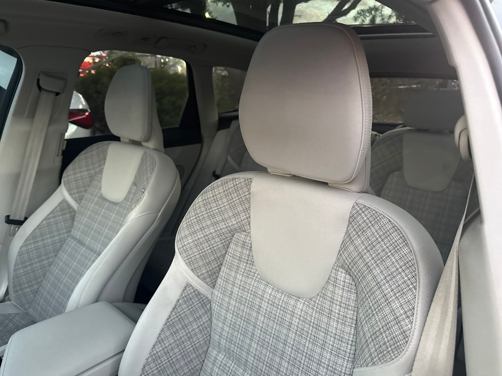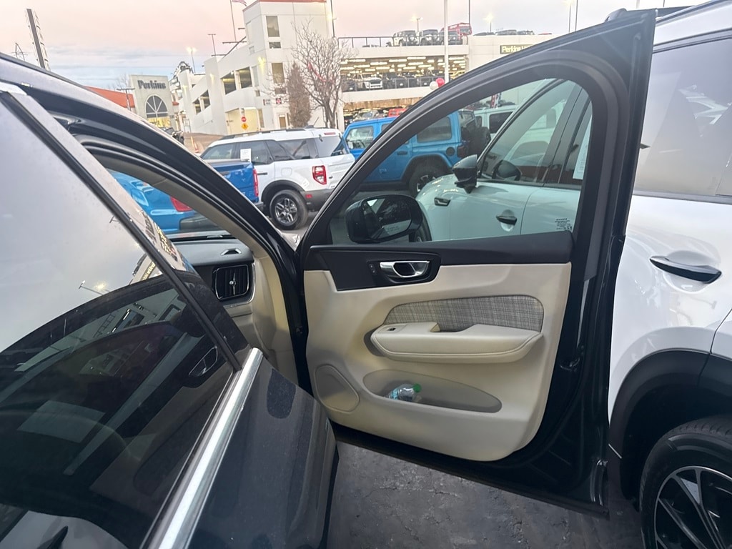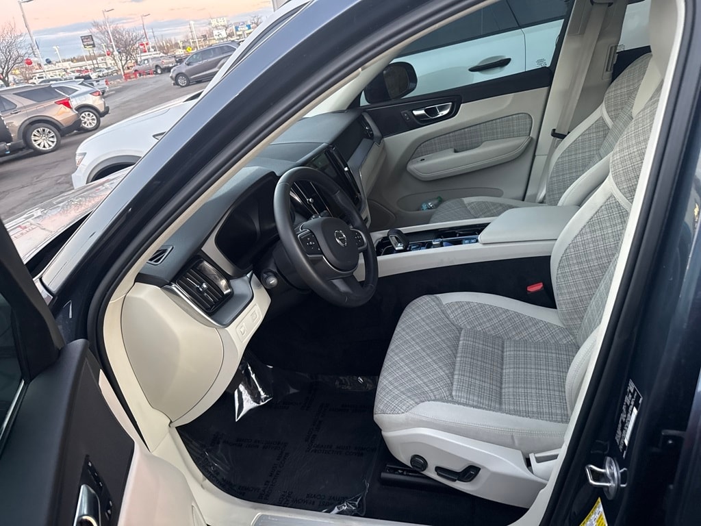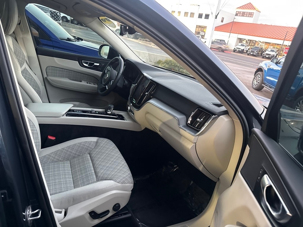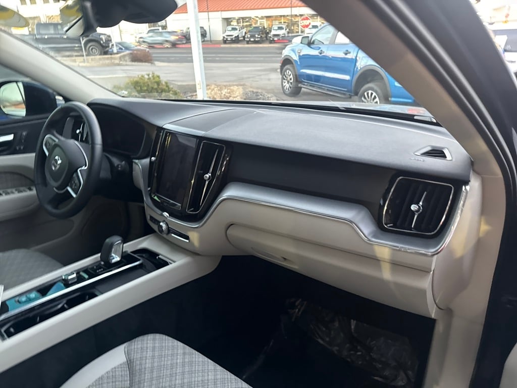 AWD, 10 Speakers, 4-Wheel Disc Brakes, ABS brakes, Air Conditioning, Alloy wheels, Anti-whiplash front head restraints, Auto High-beam Headlights, Auto-dimming door mirrors, Auto-dimming Rear-View mirror, Automatic temperature control, Blonde City Weave Textile Upholstery, Brake assist, Bumpers: body-color, Delay-off headlights, Driver door bin, Driver vanity mirror, Dual front impact airbags, Dual front side impact airbags, Electronic Stability Control, Emergency communication system: Volvo Cars App w/4 Year Subscription, Exterior Parking Camera Rear, Four wheel independent suspension, Front anti-roll bar, Front Bucket Seats, Front Center Armrest, Front dual zone A/C, Front fog lights, Front reading lights, Fully automatic headlights, Heated door mirrors, Heated Front Bucket Seats, Heated front seats, Illuminated entry, Knee airbag, Leather Shift Knob, Low tire pressure warning, Memory seat, Occupant sensing airbag, Outside temperature display, Overhead airbag, Panic alarm, Passenger door bin, Passenger vanity mirror, Power door mirrors, Power driver seat, Power moonroof, Power passenger seat, Power steering, Power windows, Radio data system, Radio: High Performance Audio System, Rain sensing wipers, Rear anti-roll bar, Rear fog lights, Rear reading lights, Rear seat center armrest, Rear window defroster, Rear window wiper, Remote keyless entry, Security system, Speed control, Split folding rear seat, Spoiler, Steering wheel mounted audio controls, Tachometer, Telescoping steering wheel, Tilt steering wheel, Traction control, Trip computer, Turn signal indicator mirrors, Variably intermittent wipers, and Wheels: 18" 5-Spoke Silver Alloy.